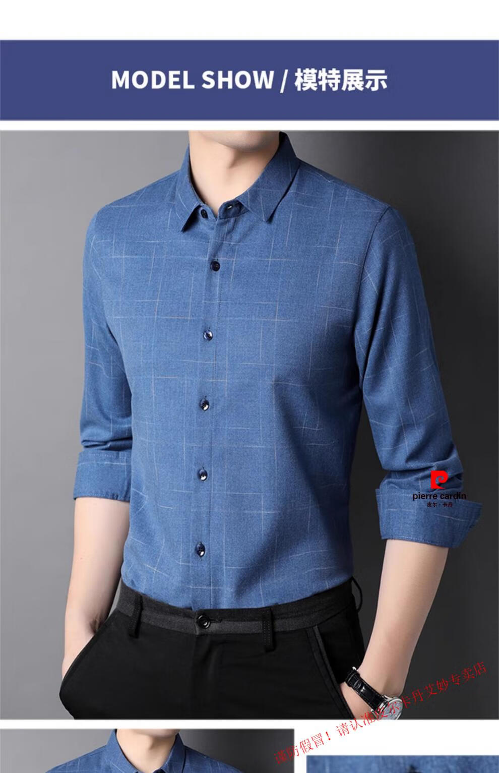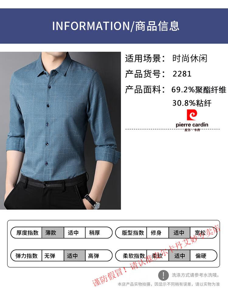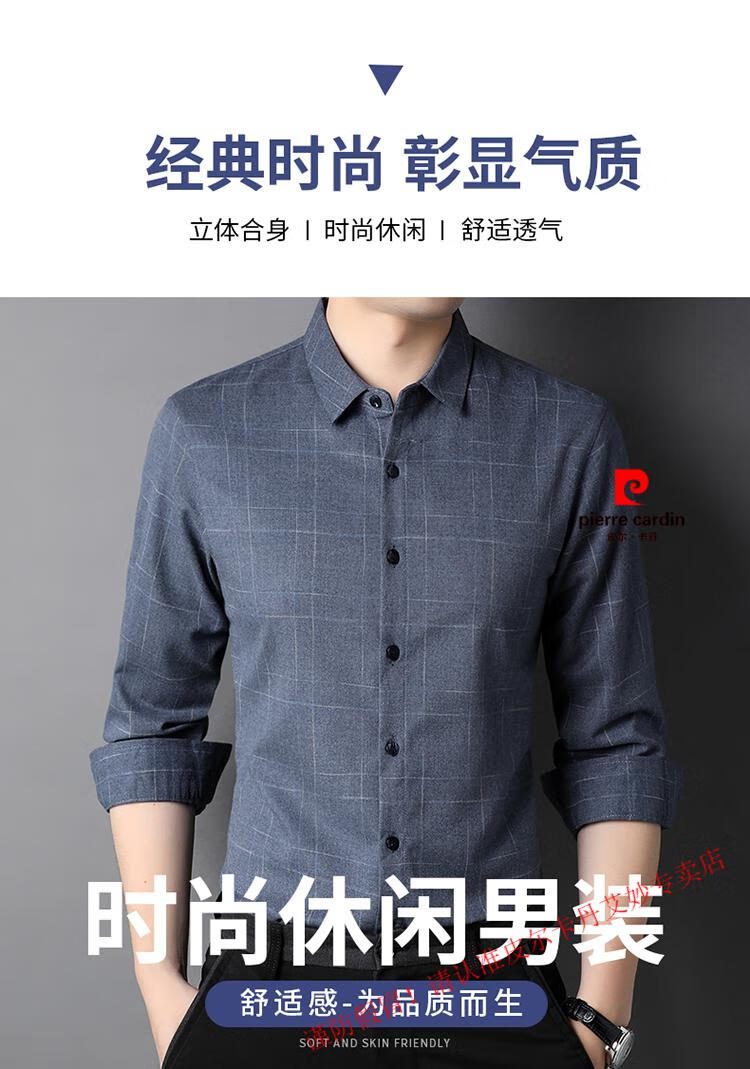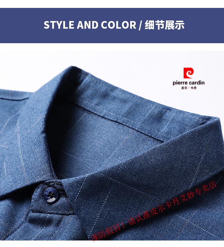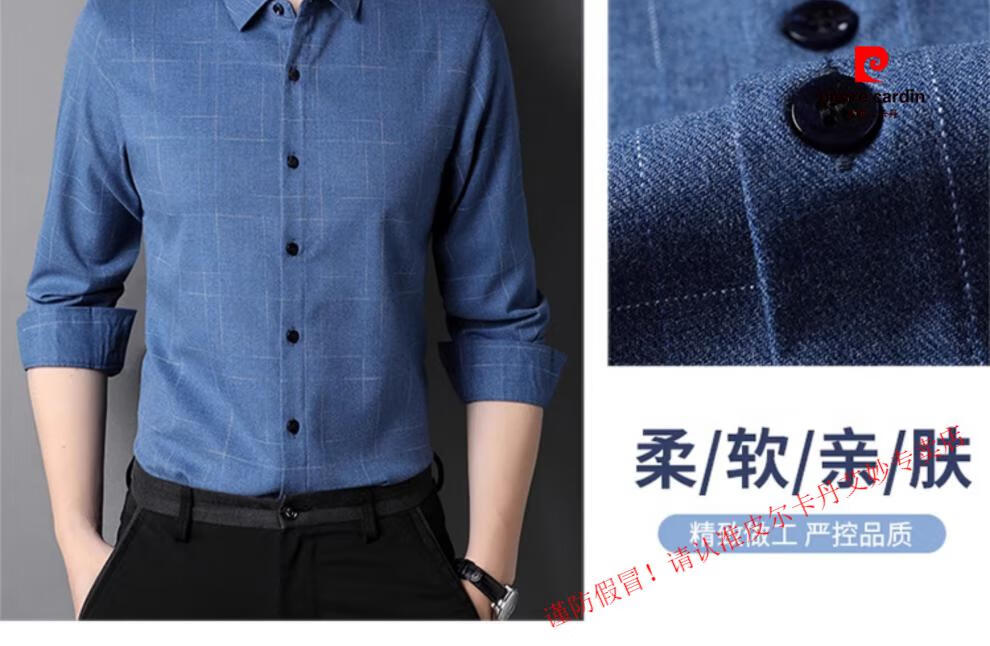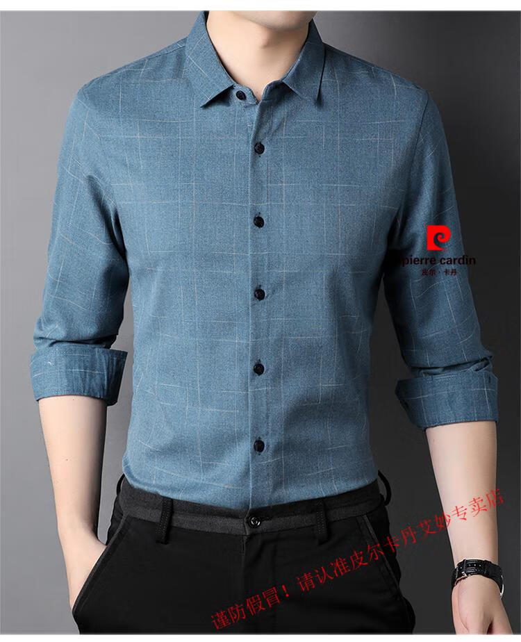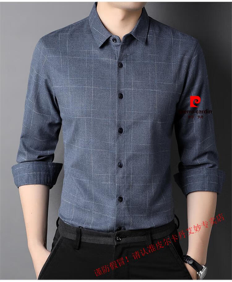 Pierre Cardin pure cotton long-sleeved shirt for men spring and autumn new style middle-aged business casual no-iron anti-wrinkle plaid shirt for dad 2281 gray spring and summer 175/XL recommended 135-150Jin Jin equals 0.5 kg