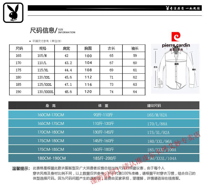 China (cm) 165 / 88-90 170 / 96-98 175 / 108-110 180 / 118-122 185 / 126-130