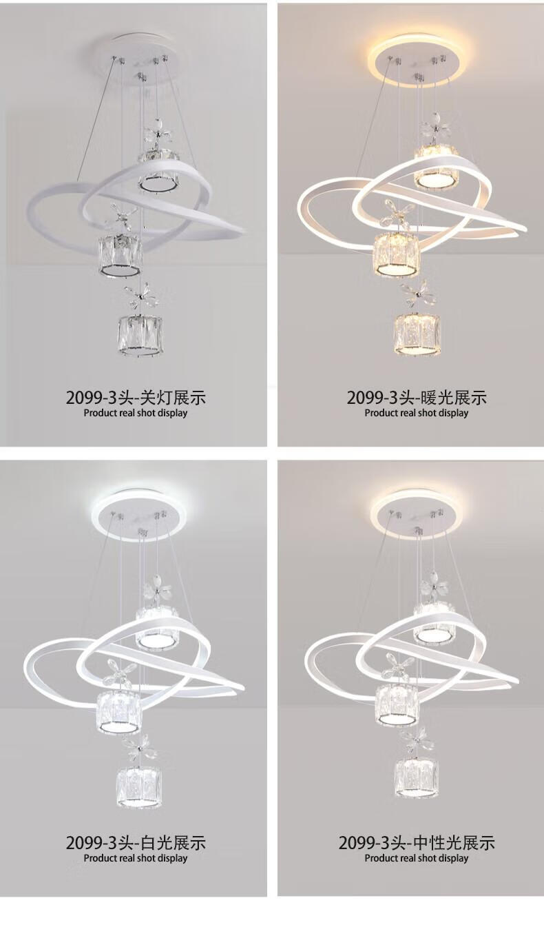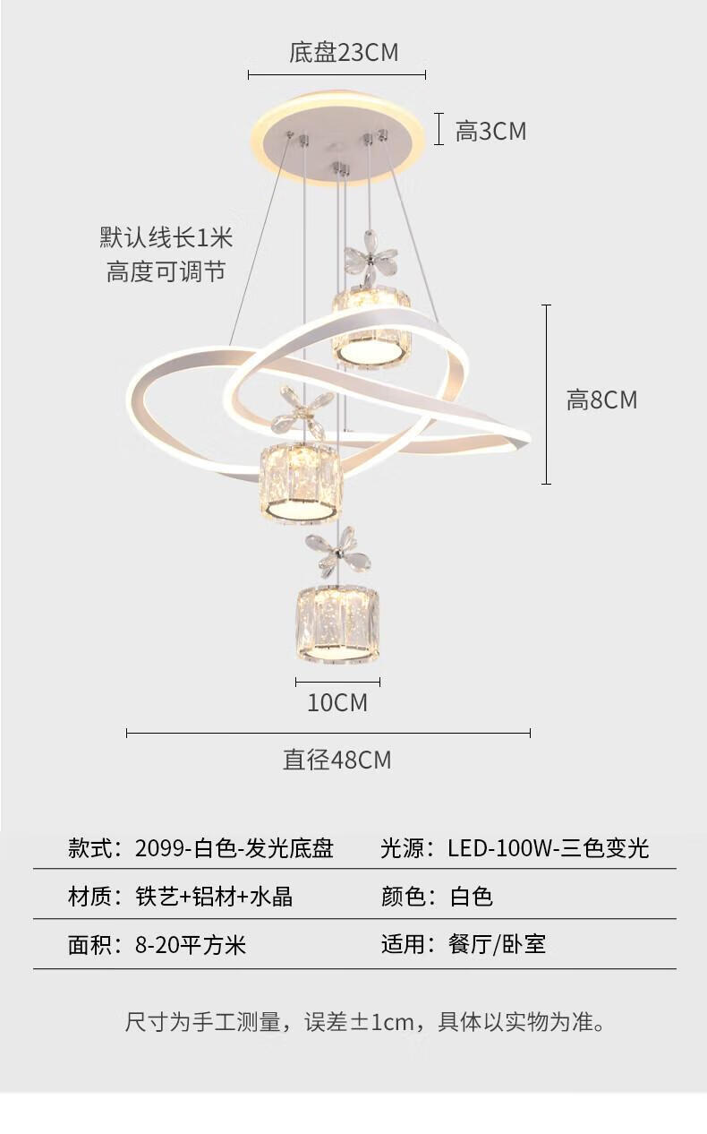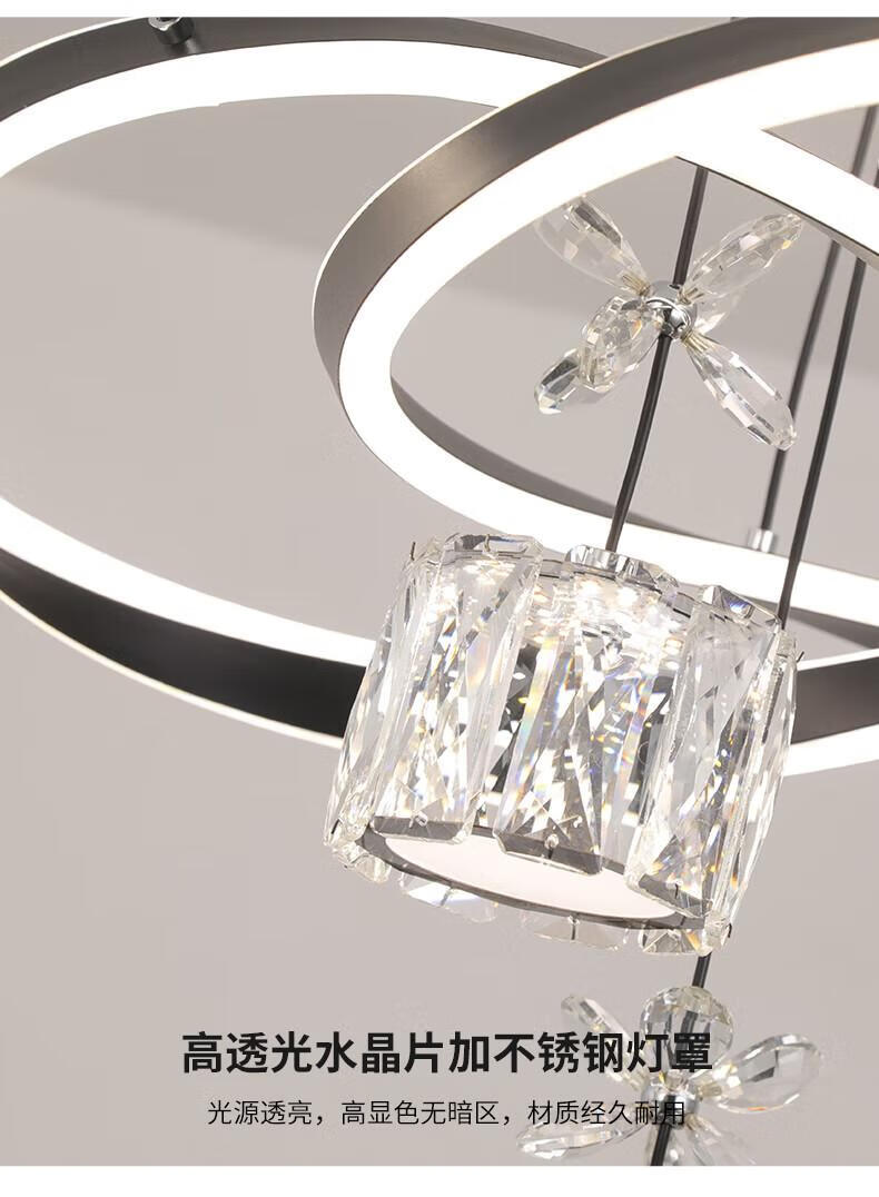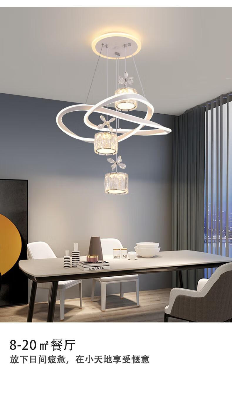 Dunjia restaurant chandelier 2025 new modern simple light luxury crystal lamp high-end bedroom chandelier Guangdong Zhongshan lamp 2099 white/A crystal cylindrical lampshade three-color dimming (no remote wall switch control)