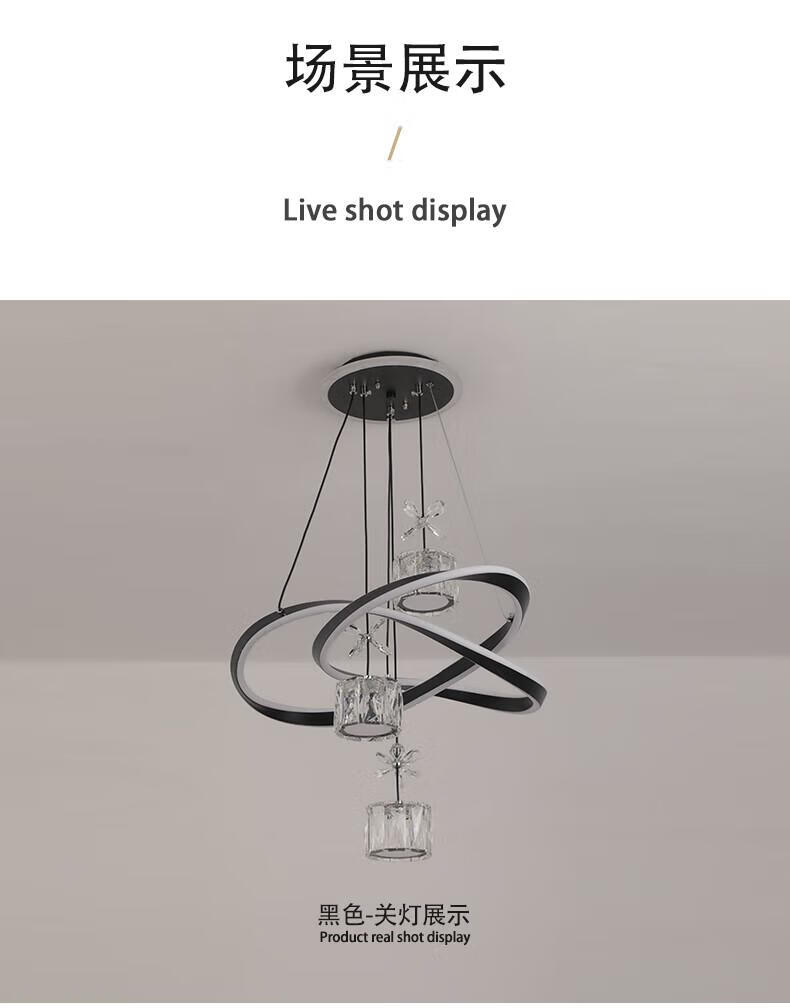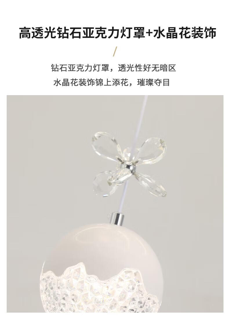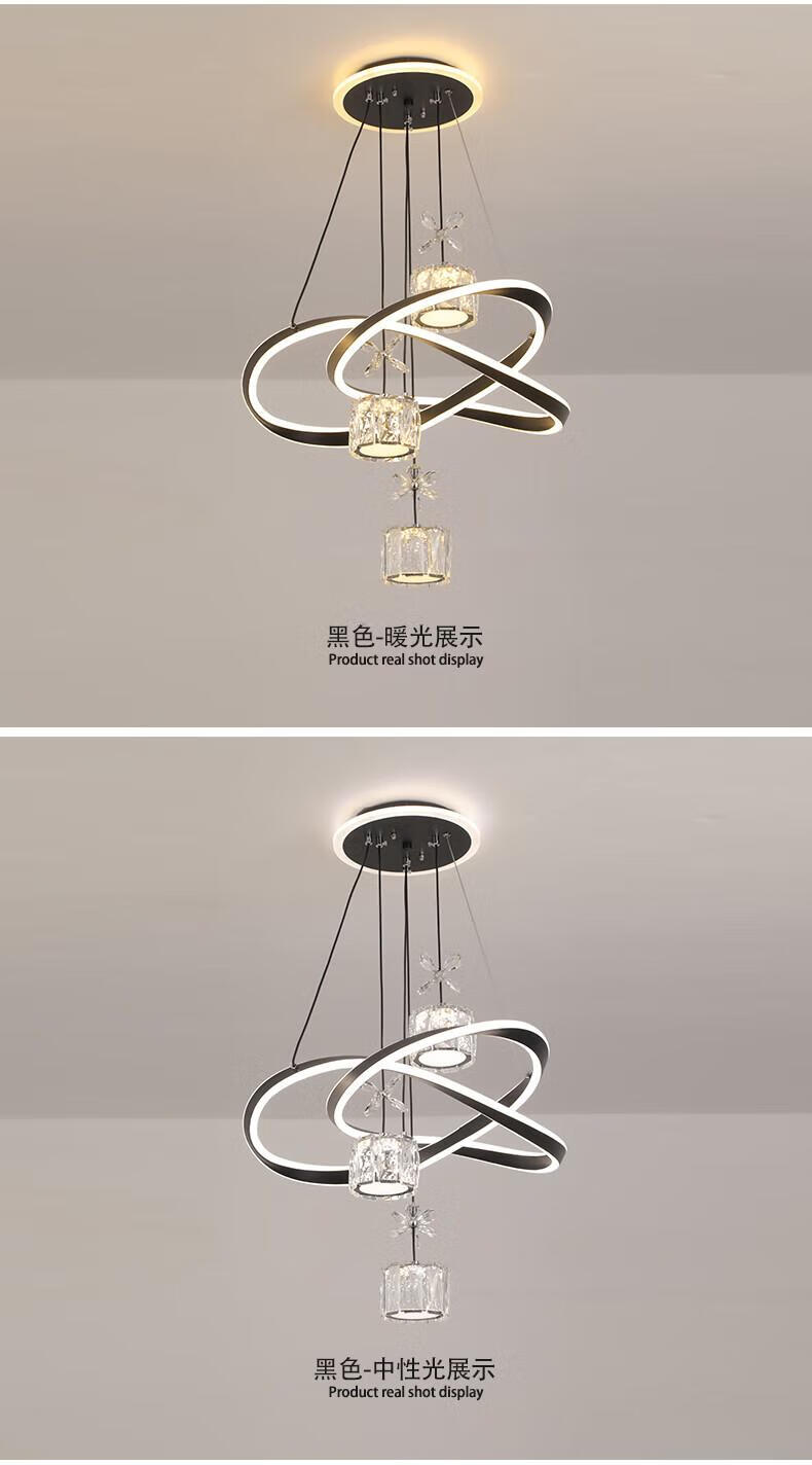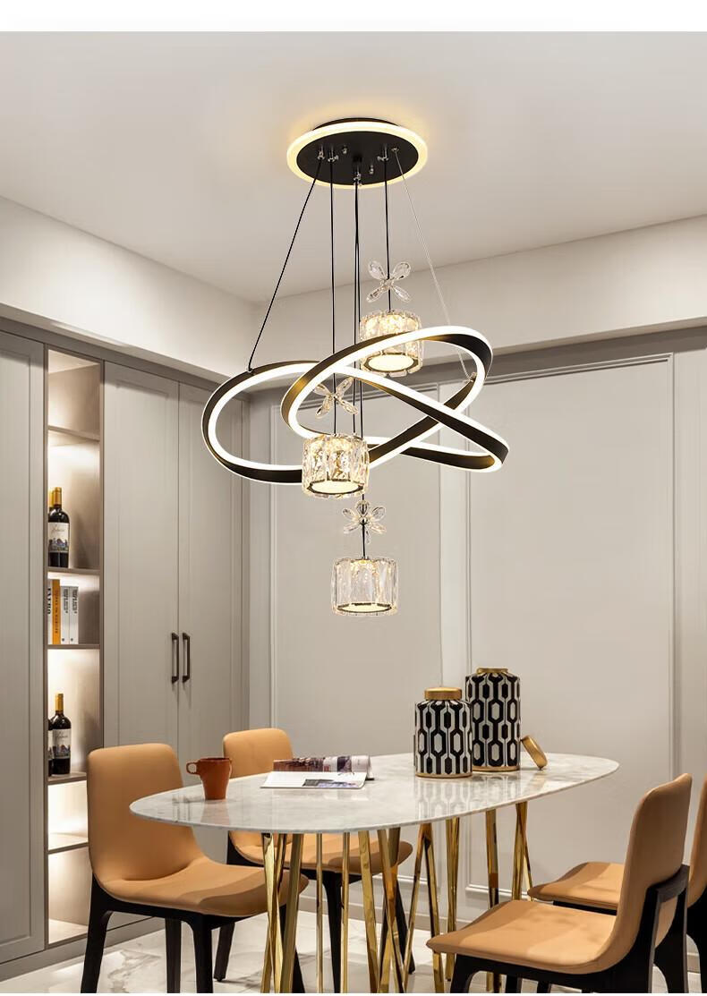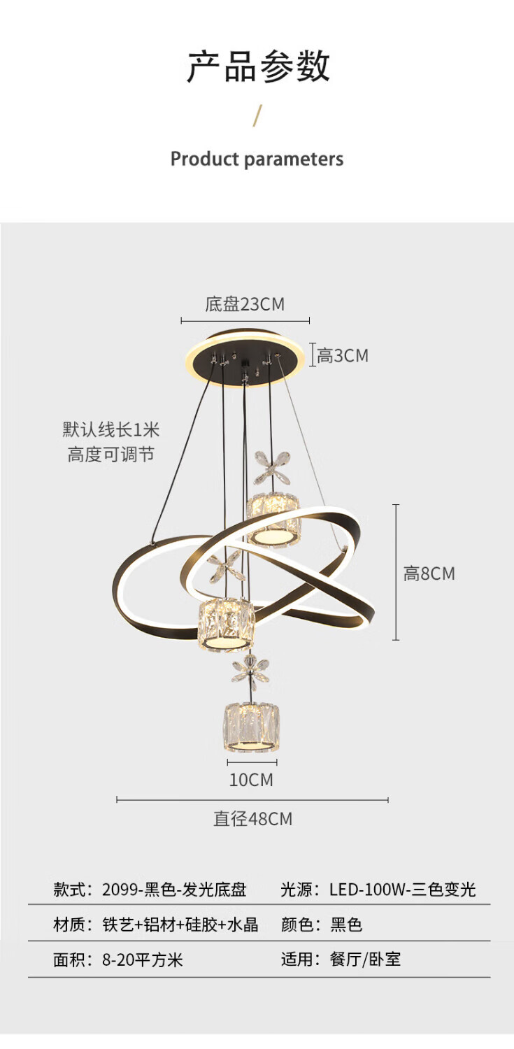 Dunjia restaurant chandelier 2025 new modern simple light luxury crystal lamp high-end bedroom chandelier Guangdong Zhongshan lamp 2099 white/A crystal cylindrical lampshade three-color dimming (no remote wall switch control)