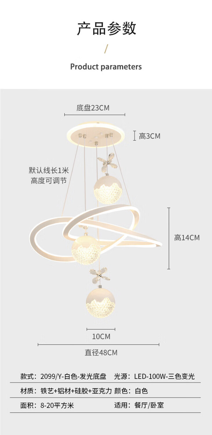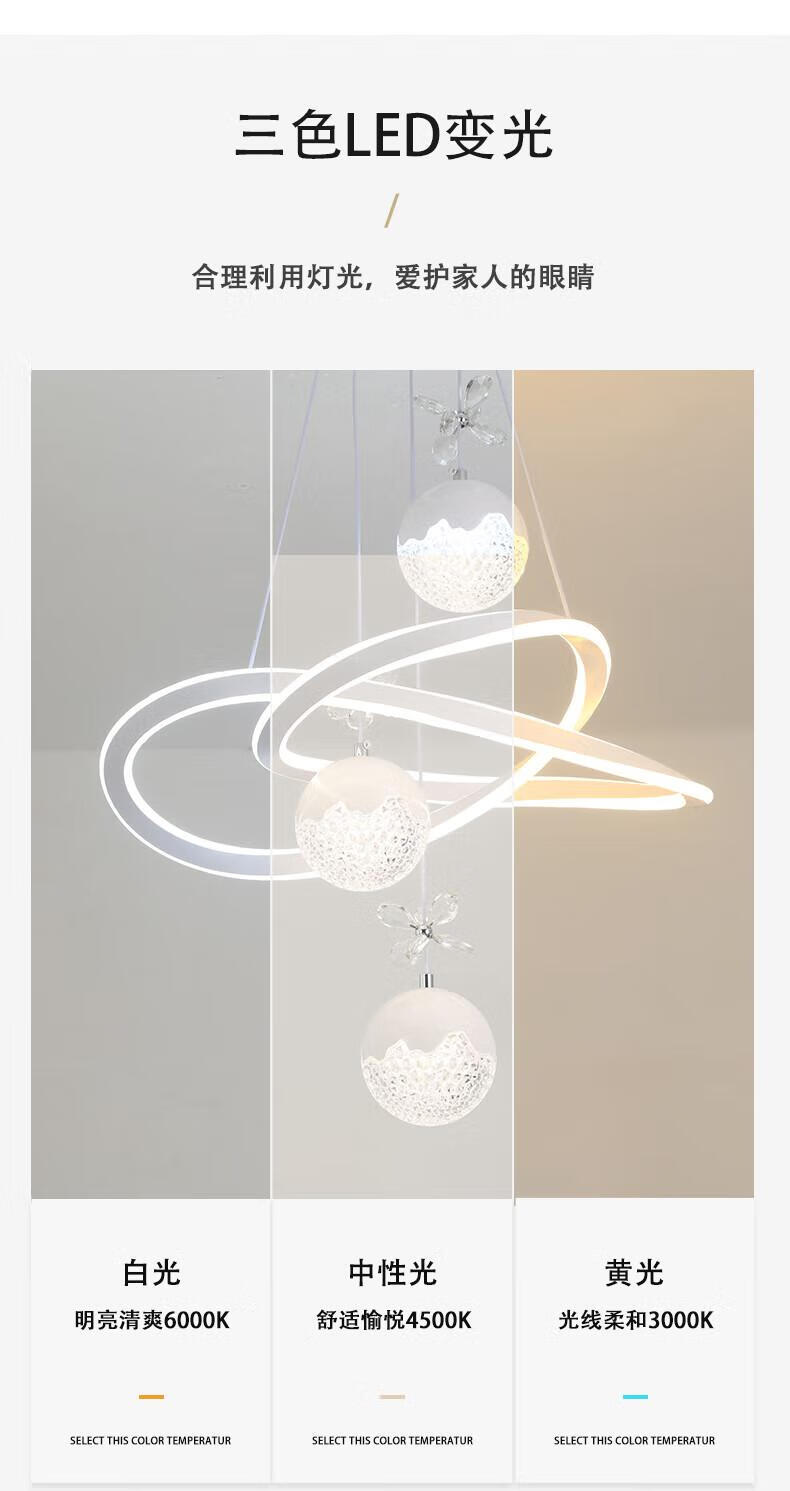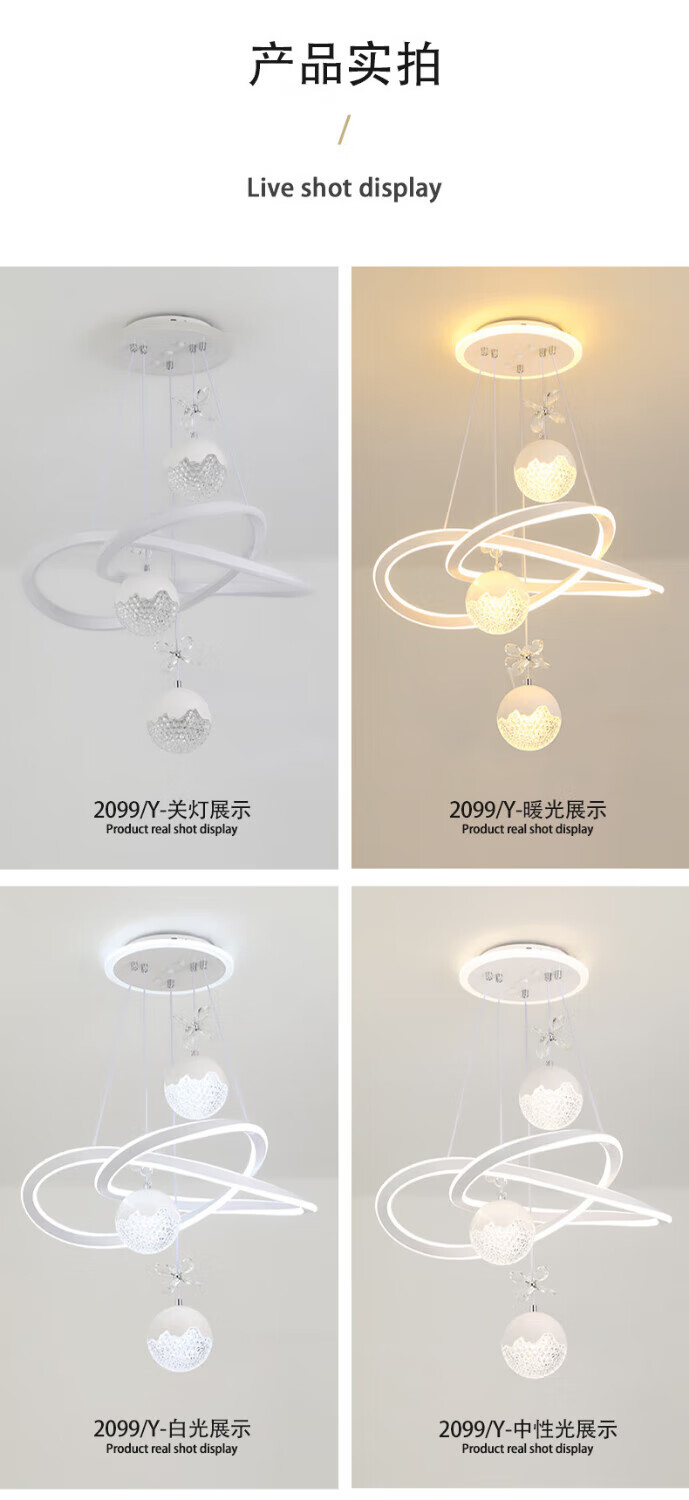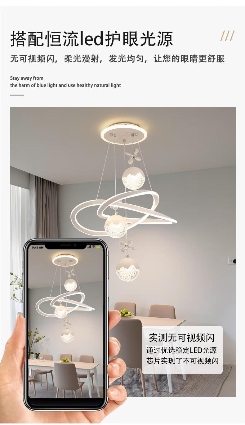 Dunjia restaurant chandelier 2025 new modern simple light luxury crystal lamp high-end bedroom chandelier Guangdong Zhongshan lamp 2099 white/A crystal cylindrical lampshade three-color dimming (no remote wall switch control)