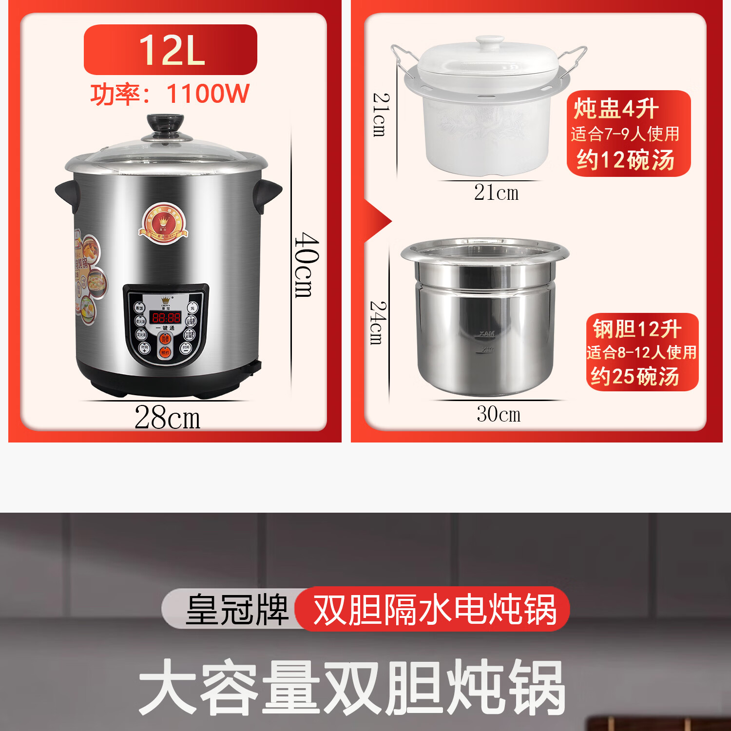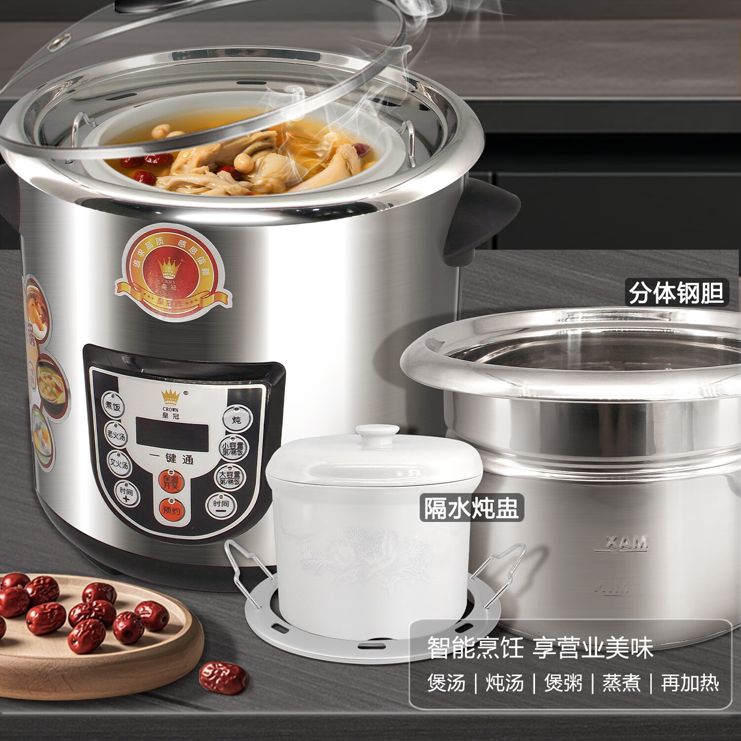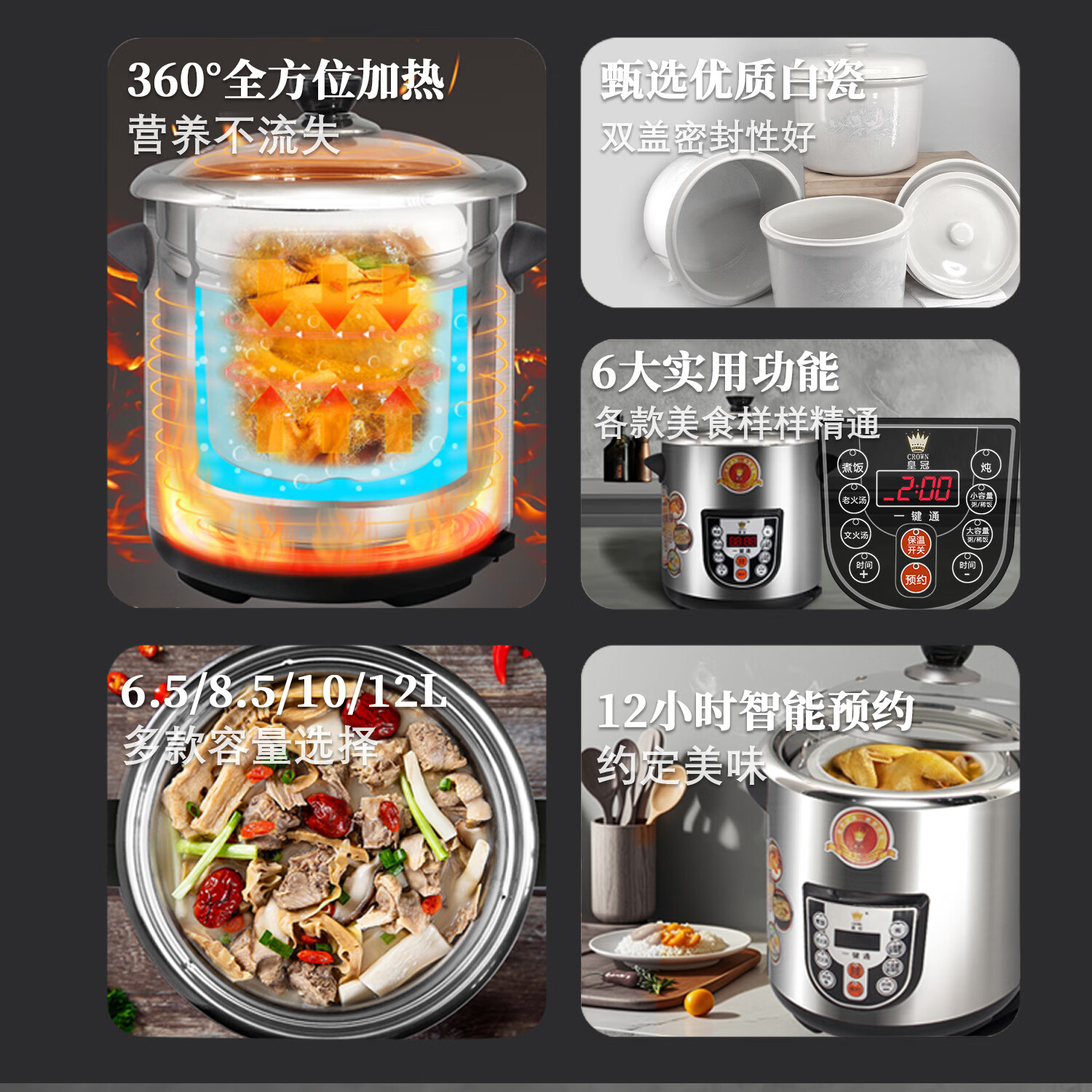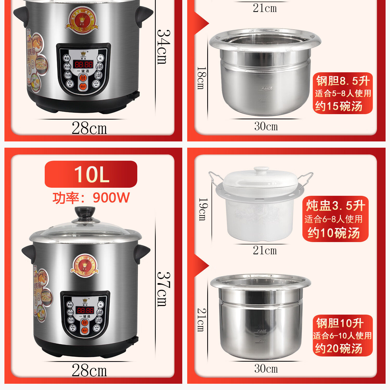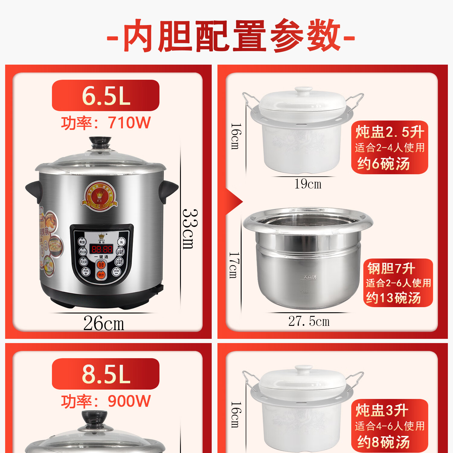 Crown electric stew pot household multifunctional large-capacity stainless steel water-proof white porcelain electric stew pot for soup and porridge health pot new model 8.5L including stew pot/same model in physical store