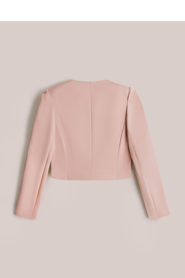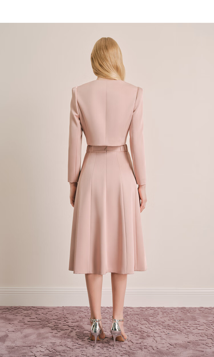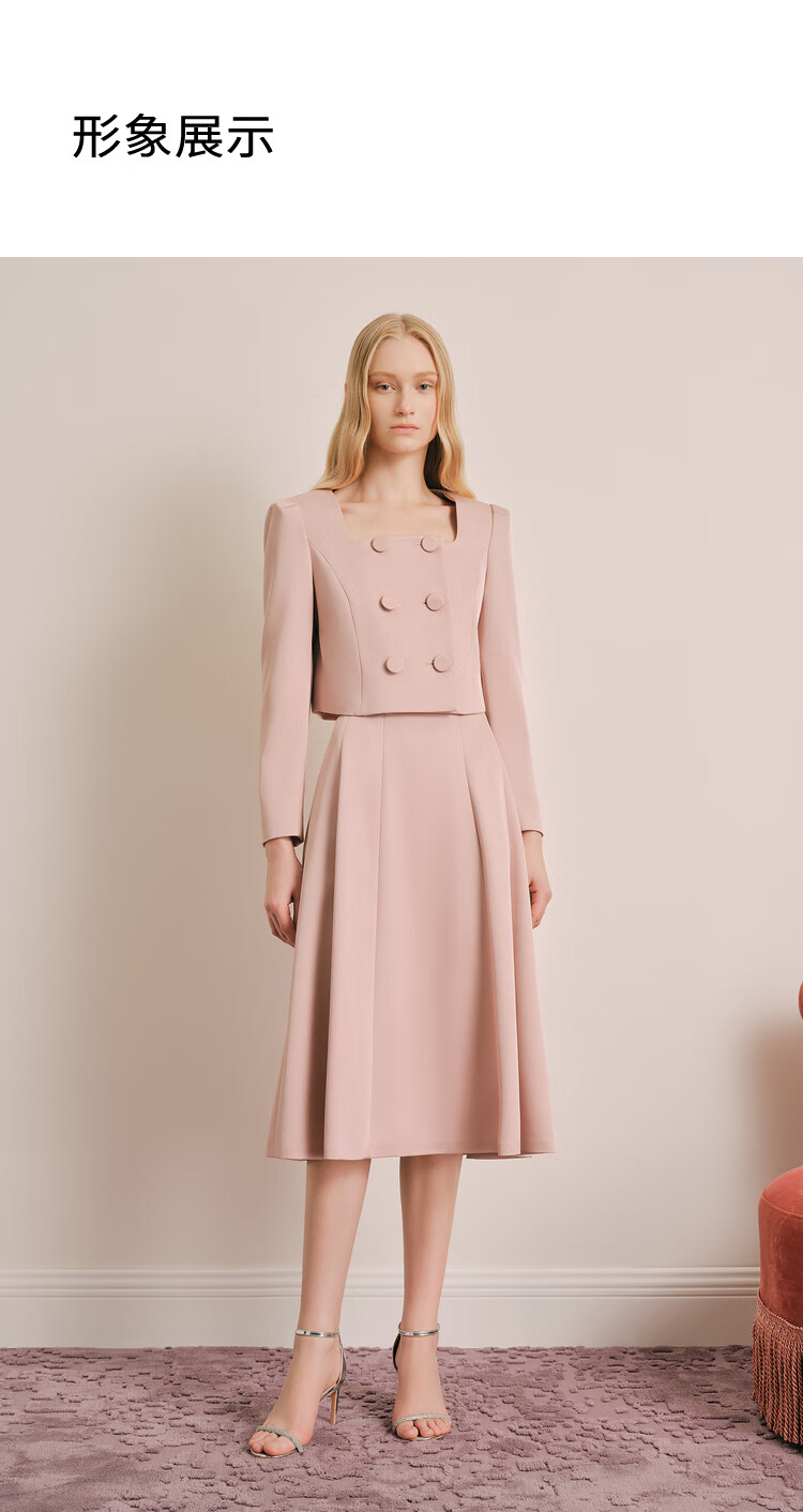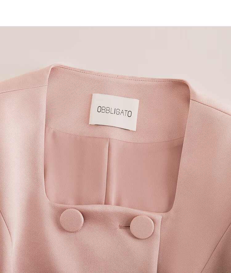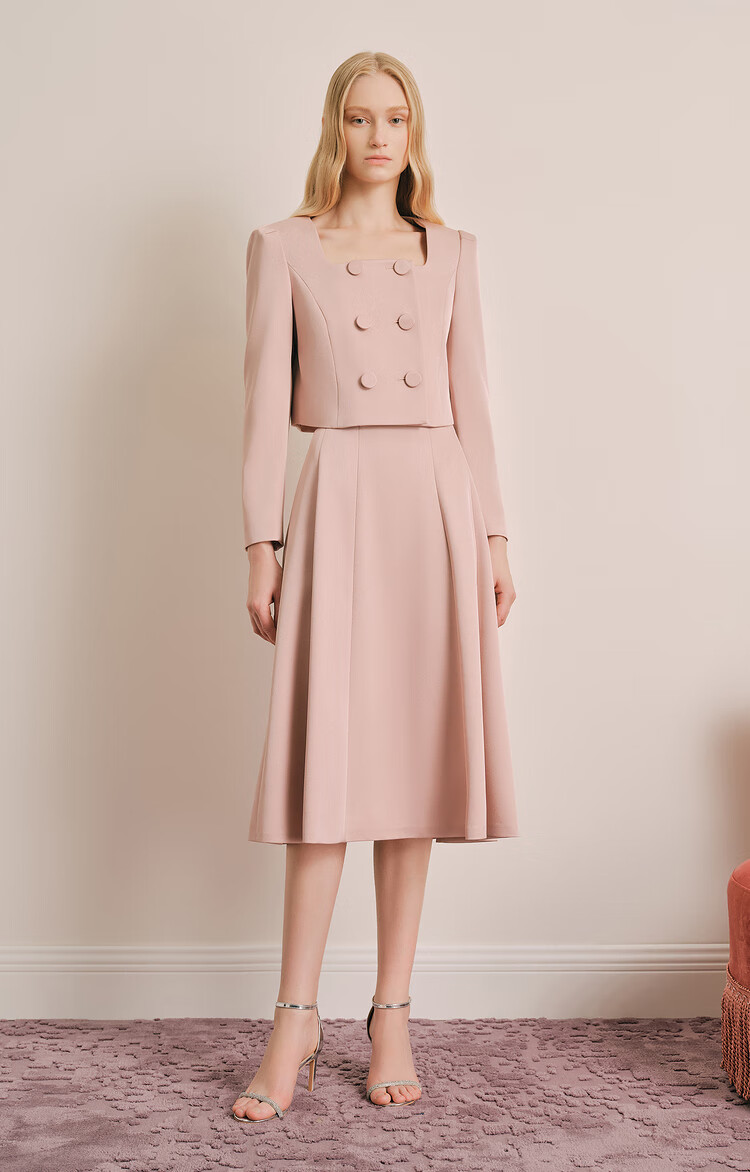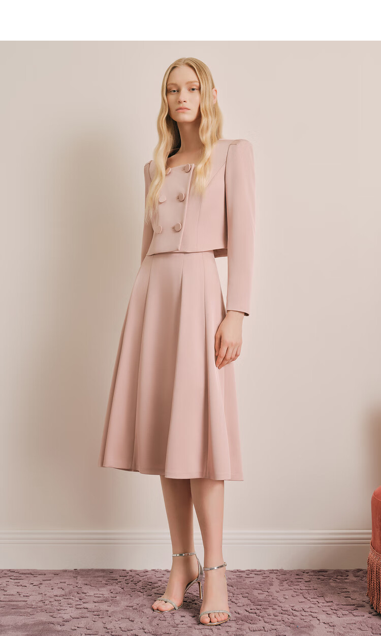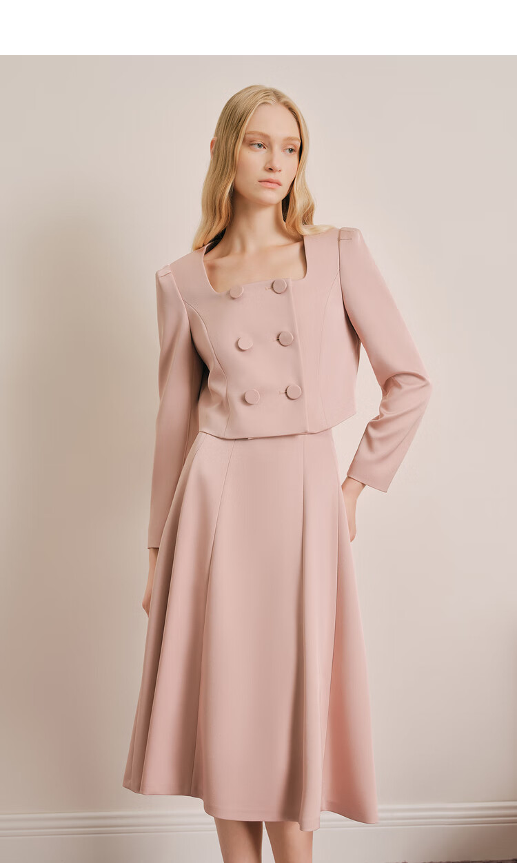 OBBLIGATO Autumn and Winter Smoke Gray Pink Shoulder Pads Square Collar Covered Button Short Jacket Single Skirt Smoke Pink M