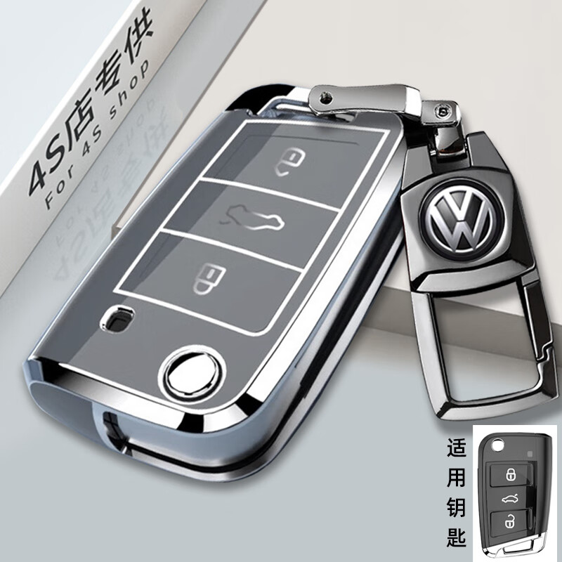 Cangsu is suitable for 2024 Volkswagen Tiguan LPro key cover, smart premium version, remote control case accessories, Tiguan L Pro smart model A, gray metal buckle