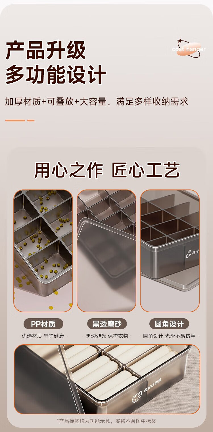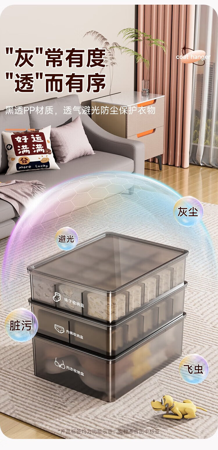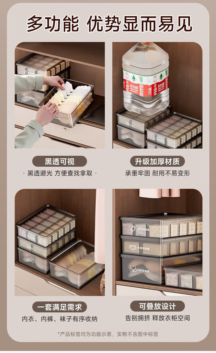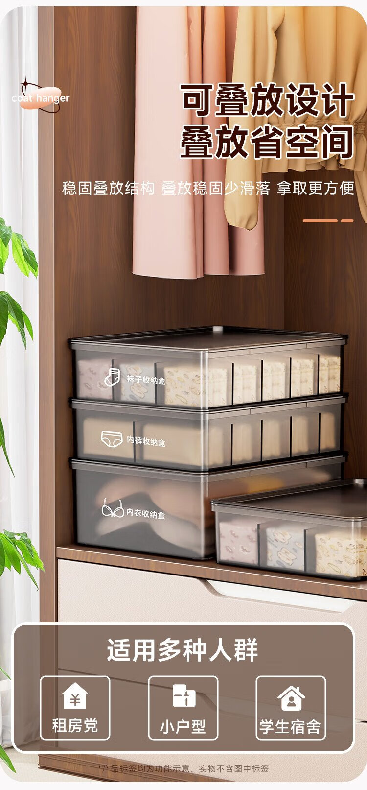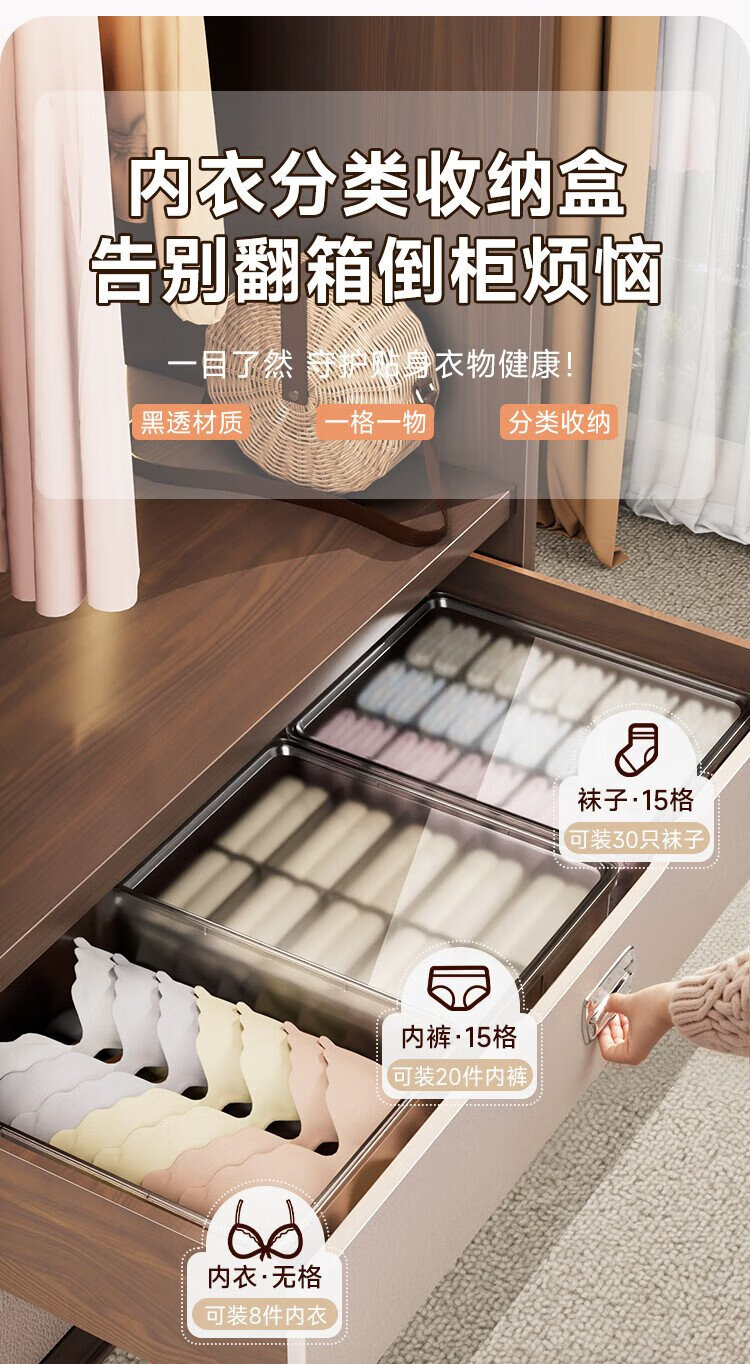 Jia helper underwear and socks storage box household underwear compartment artifact student dormitory wardrobe storage box 15 compartments with cover sock storage
