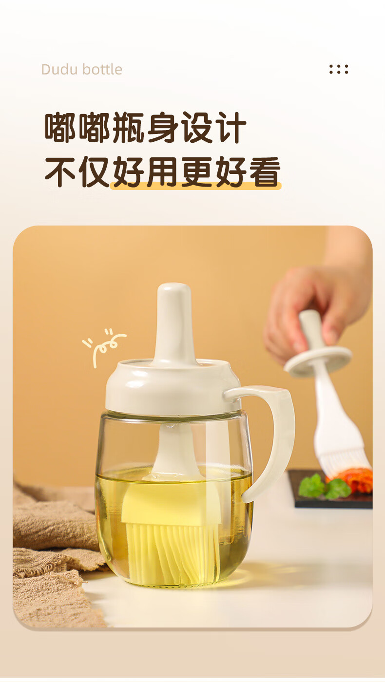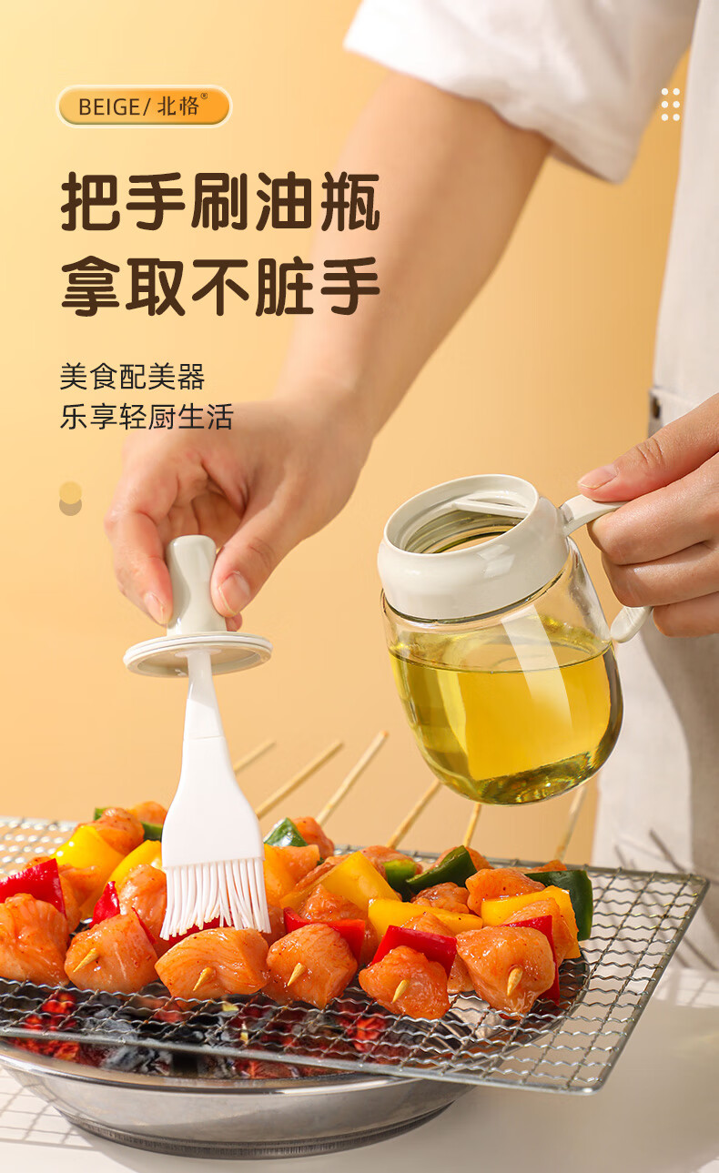 Beige oil brush oil bottle integrated kitchen high temperature resistant silicone oil brush kettle electric cake pan barbecue baking special oil brush with handle brush oil straight bottle 1 pack 250ml