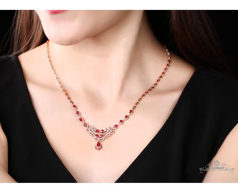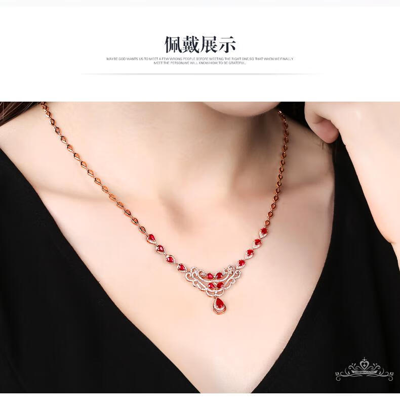 Haikai Necklace Women's Pigeon Blood Ruby Necklace Luxury Jewelry Valentine's Day Birthday Gift for Wife and Girlfriend 2.42 Carat Pigeon Blood Ruby Necklace (64.5 Points Diamond)