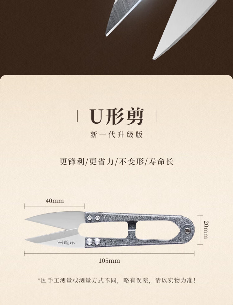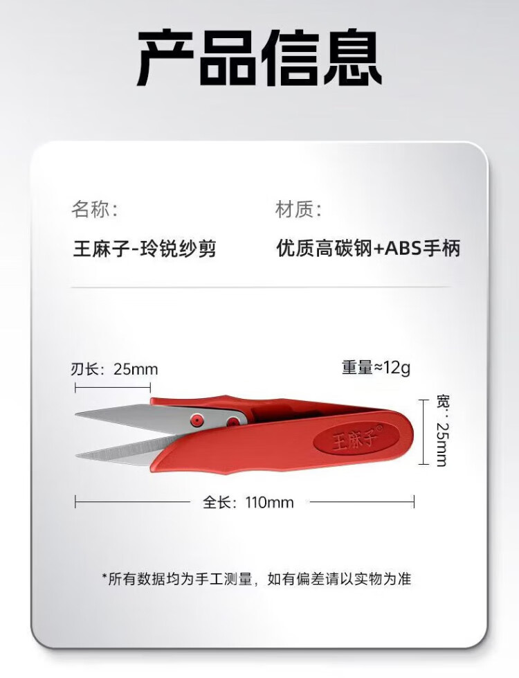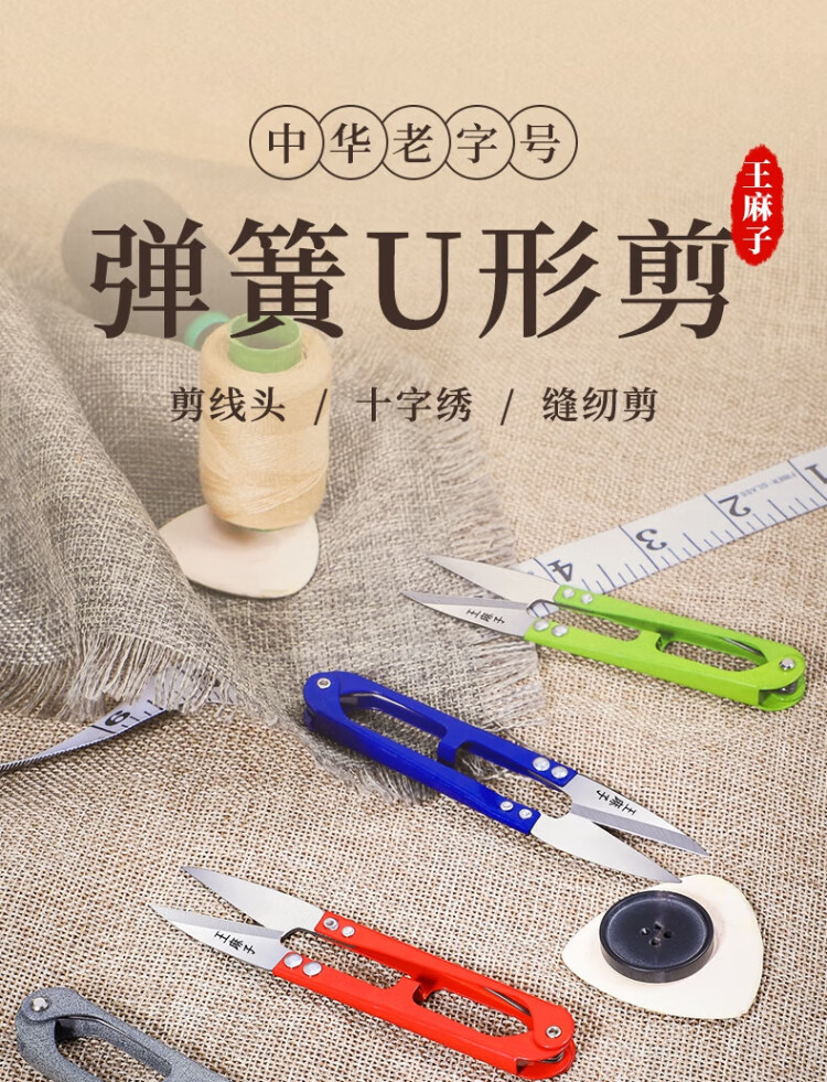 王麻子剪刀 家用U型小剪刀剪线头剪纸裁缝工业多功能剪子 红色升级款【单支装·高碳钢】
