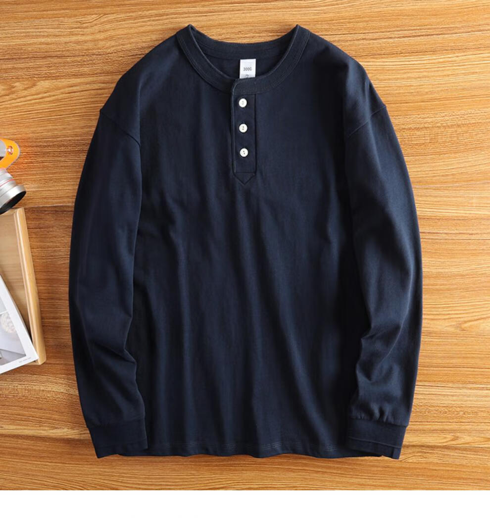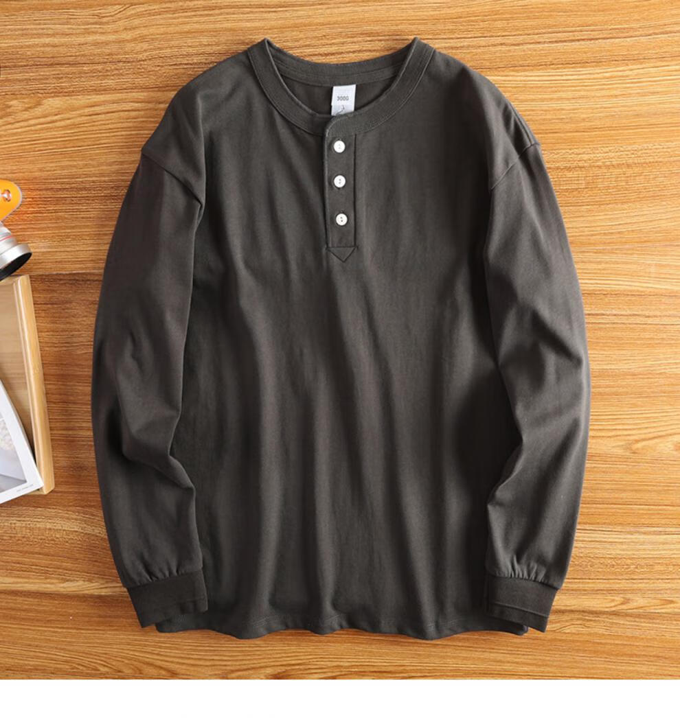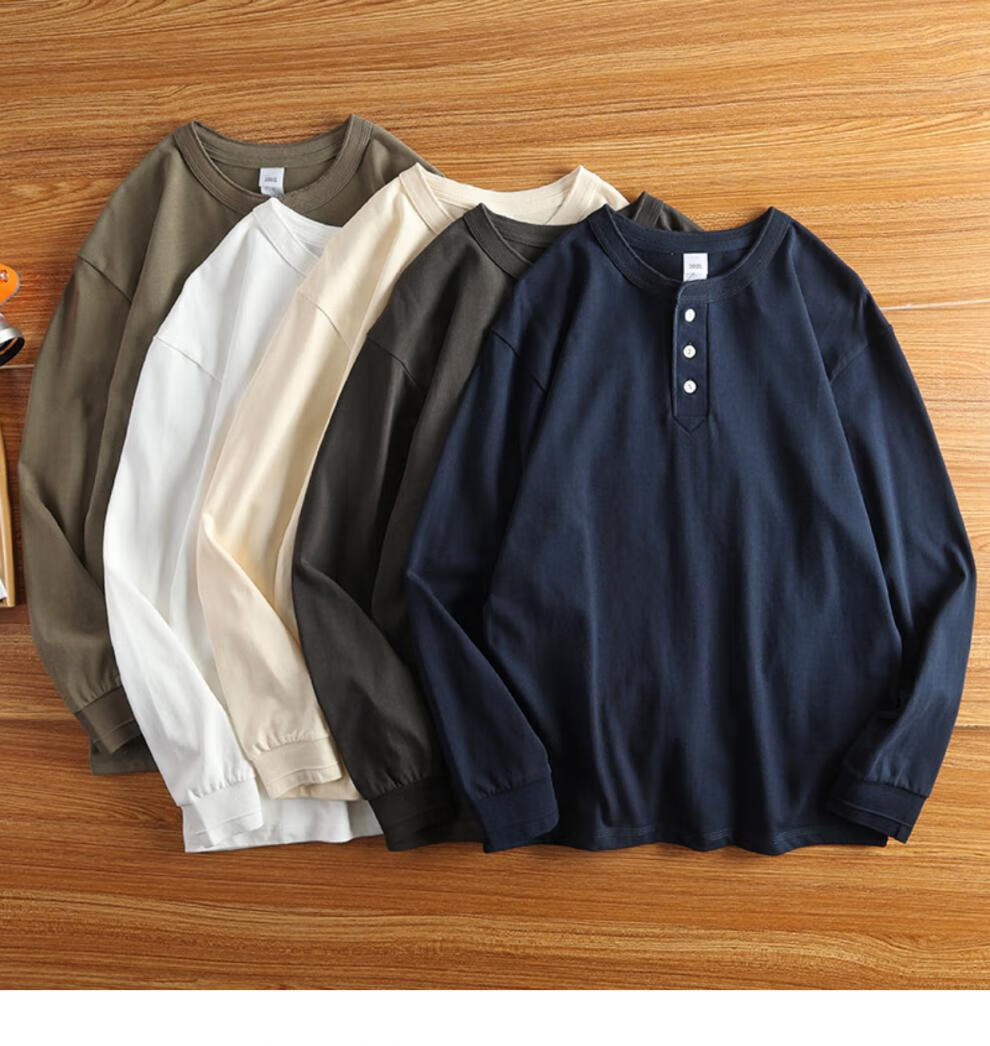 JEEP SPIRIT heavyweight cotton T-shirt men's long-sleeved inner Japanese retro bottoming shirt loose trendy T-shirt top new Henry shirt military green M