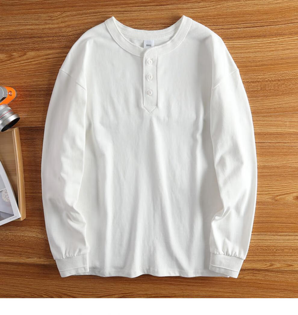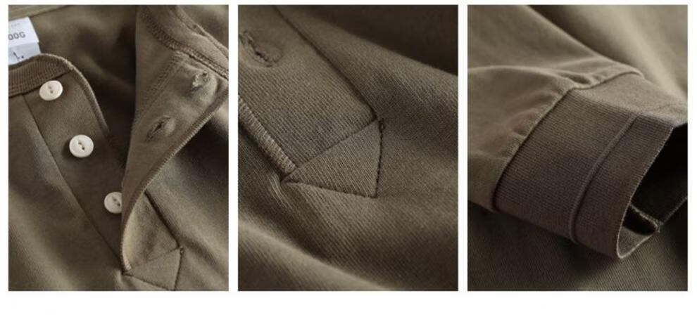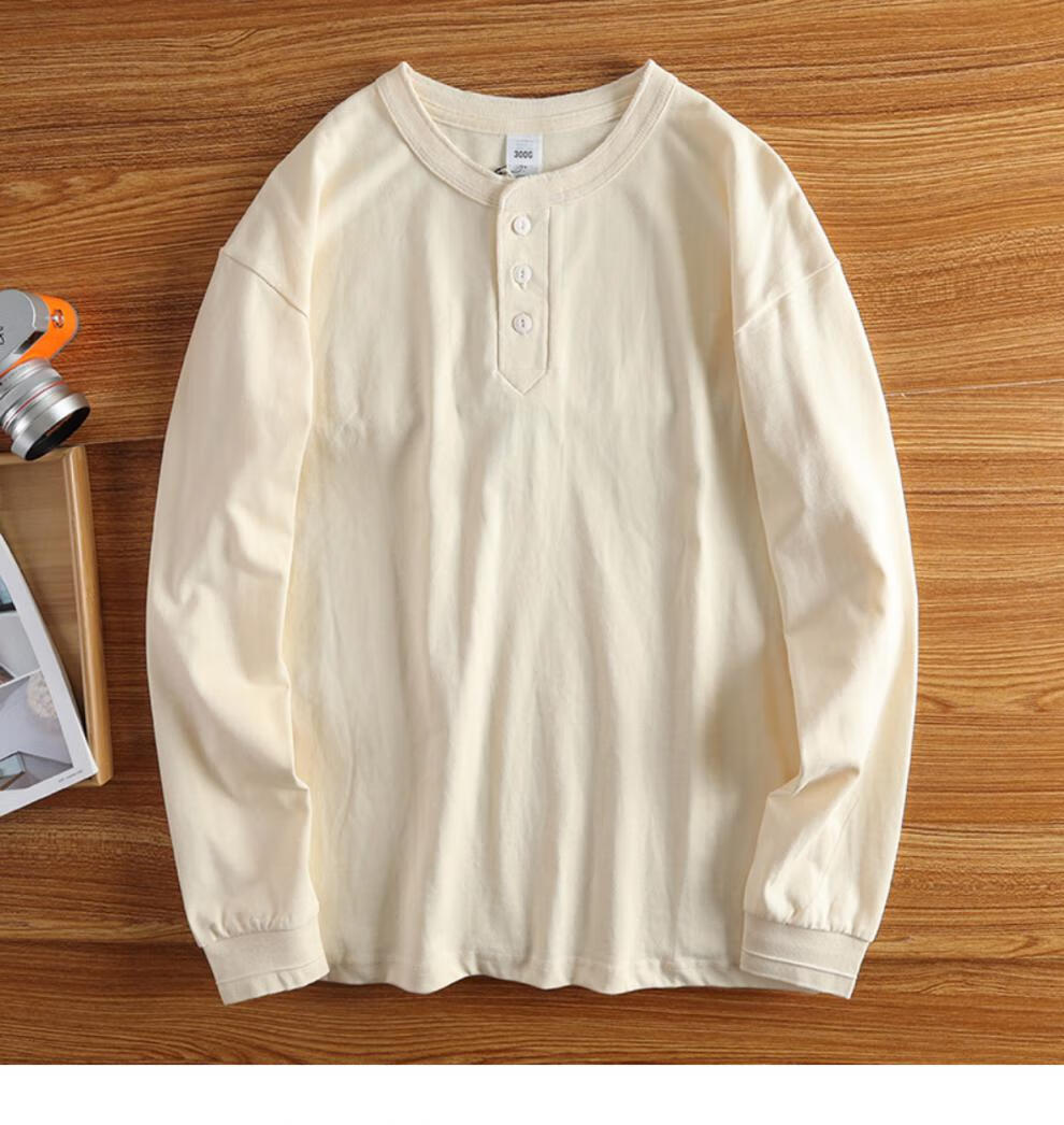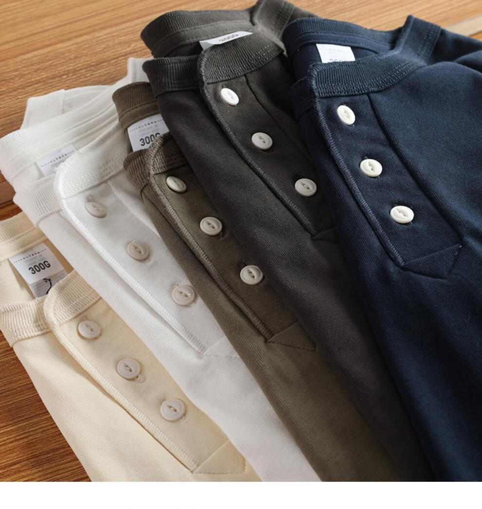 JEEP SPIRIT heavyweight cotton T-shirt men's long-sleeved inner Japanese retro bottoming shirt loose trendy T-shirt top new Henry shirt military green M