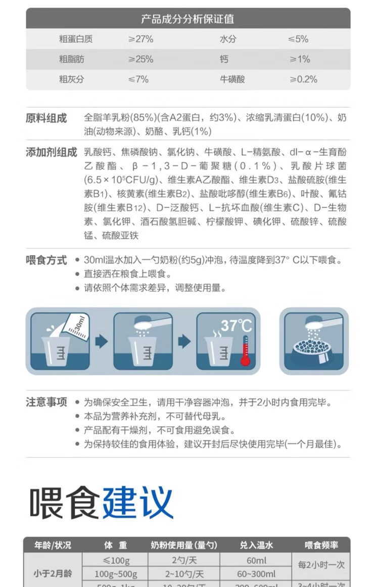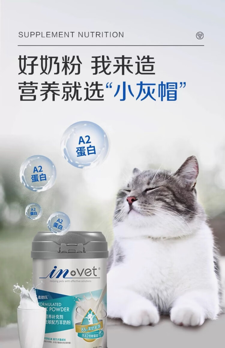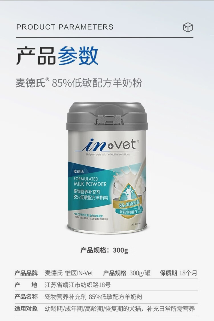 Med's Pet Goat Milk Powder for Dogs and Cats 85% Hypoallergenic Formula A2 Protein 300/can Green Normal