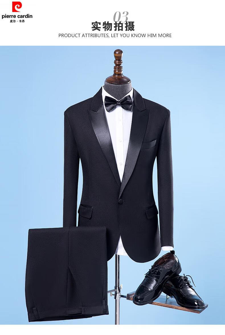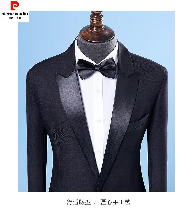 Pierre Cardin performance clothing men's suit singer host dress men's adult chorus clothing performance clothing men's black jacket + pants + bow tie XL 160Jin Jin equals about 0.5 kg