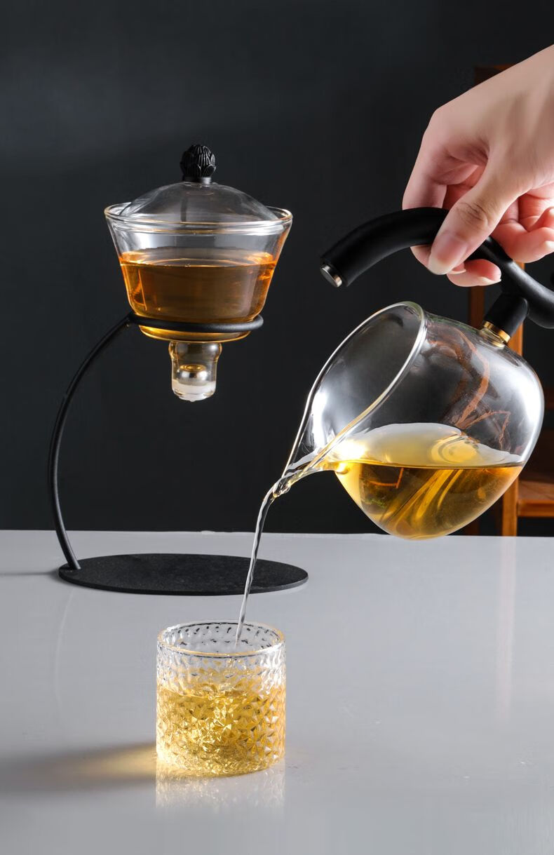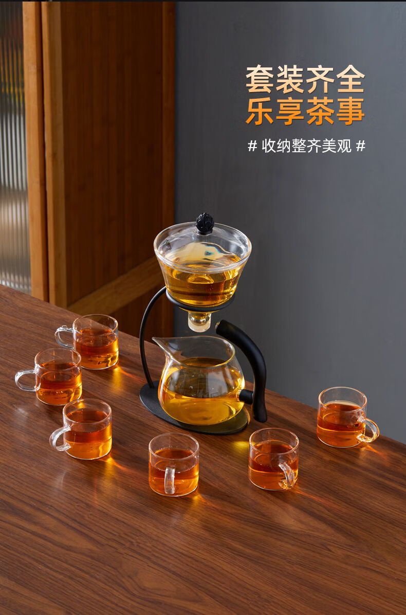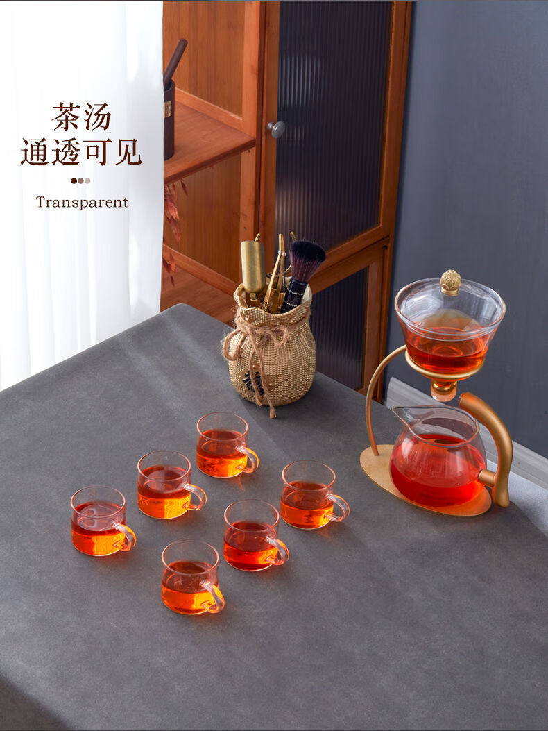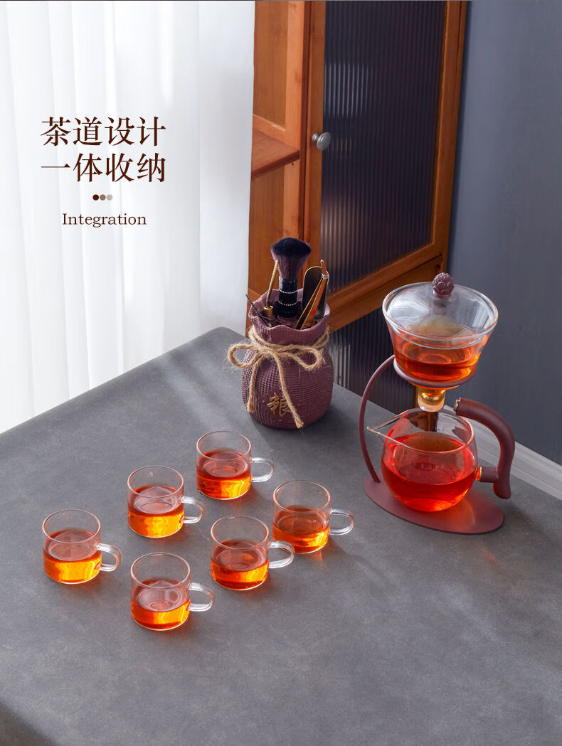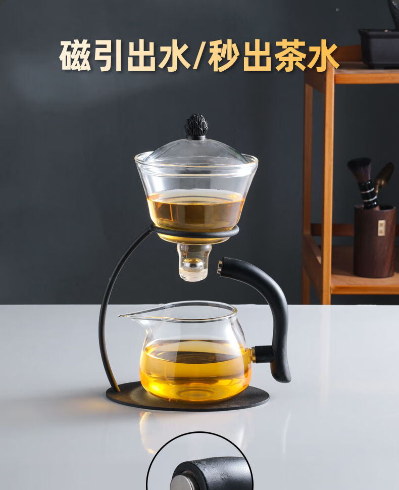 Vinoa glass lazy automatic tea set Kung Fu tea cup set household magnetic teapot living room Chinese tea making artifact black crescent moon