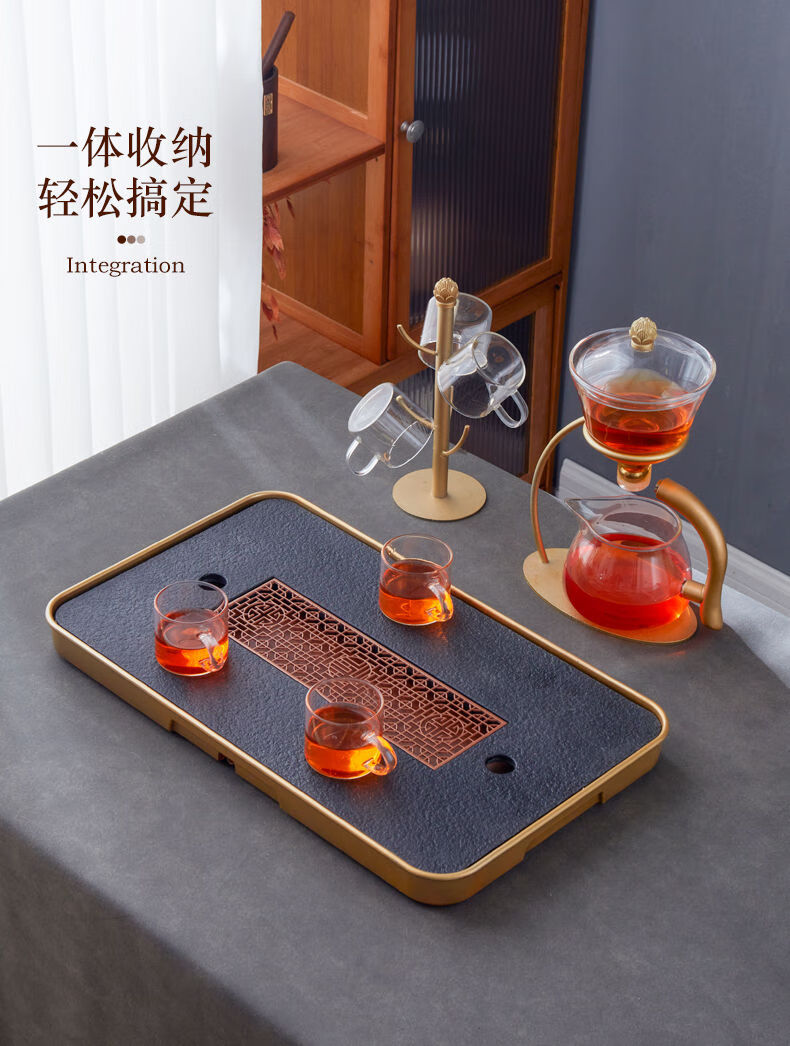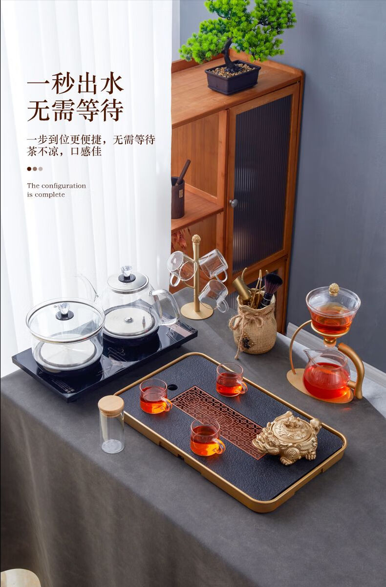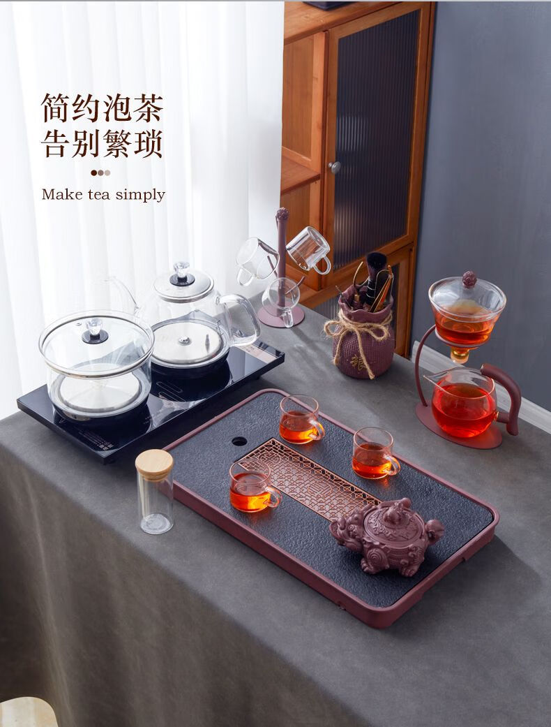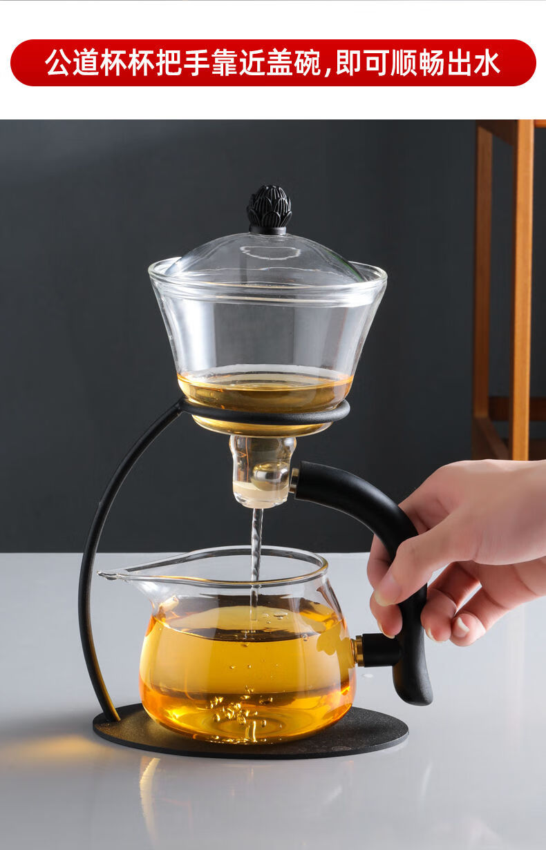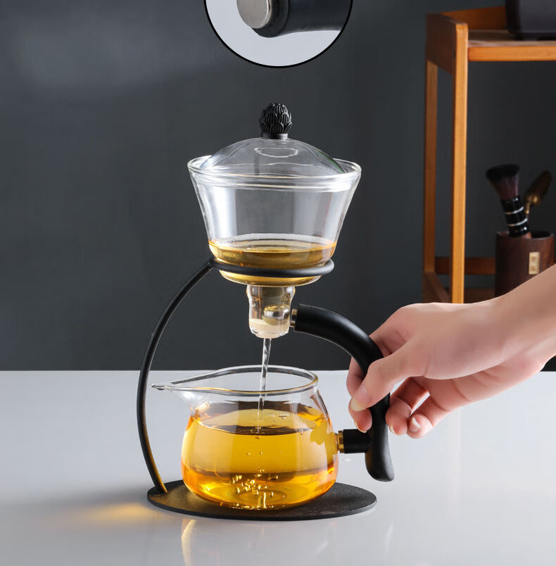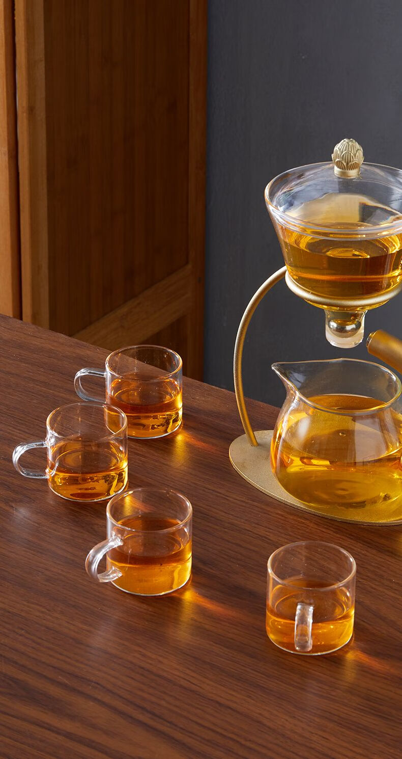 Vinoa glass lazy automatic tea set Kung Fu tea cup set household magnetic teapot living room Chinese tea making artifact black crescent moon