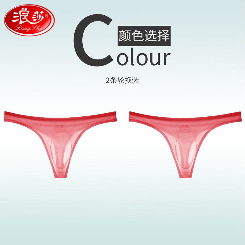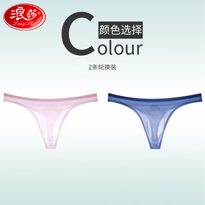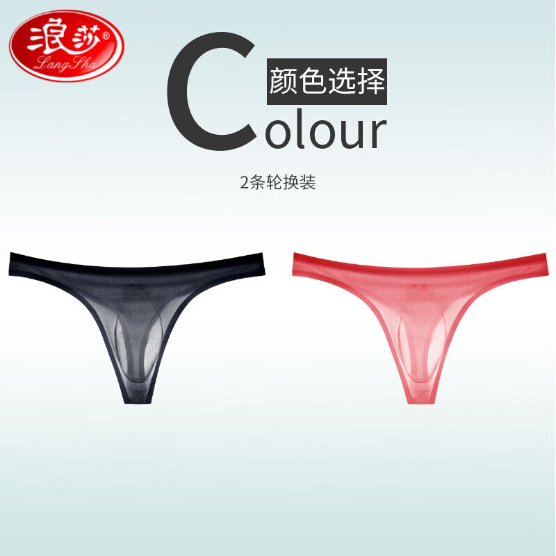 CHIUTSE thong underwear men's ice silk transparent seamless pink low-waist sexy breathable mesh sports fitness thong men's black M