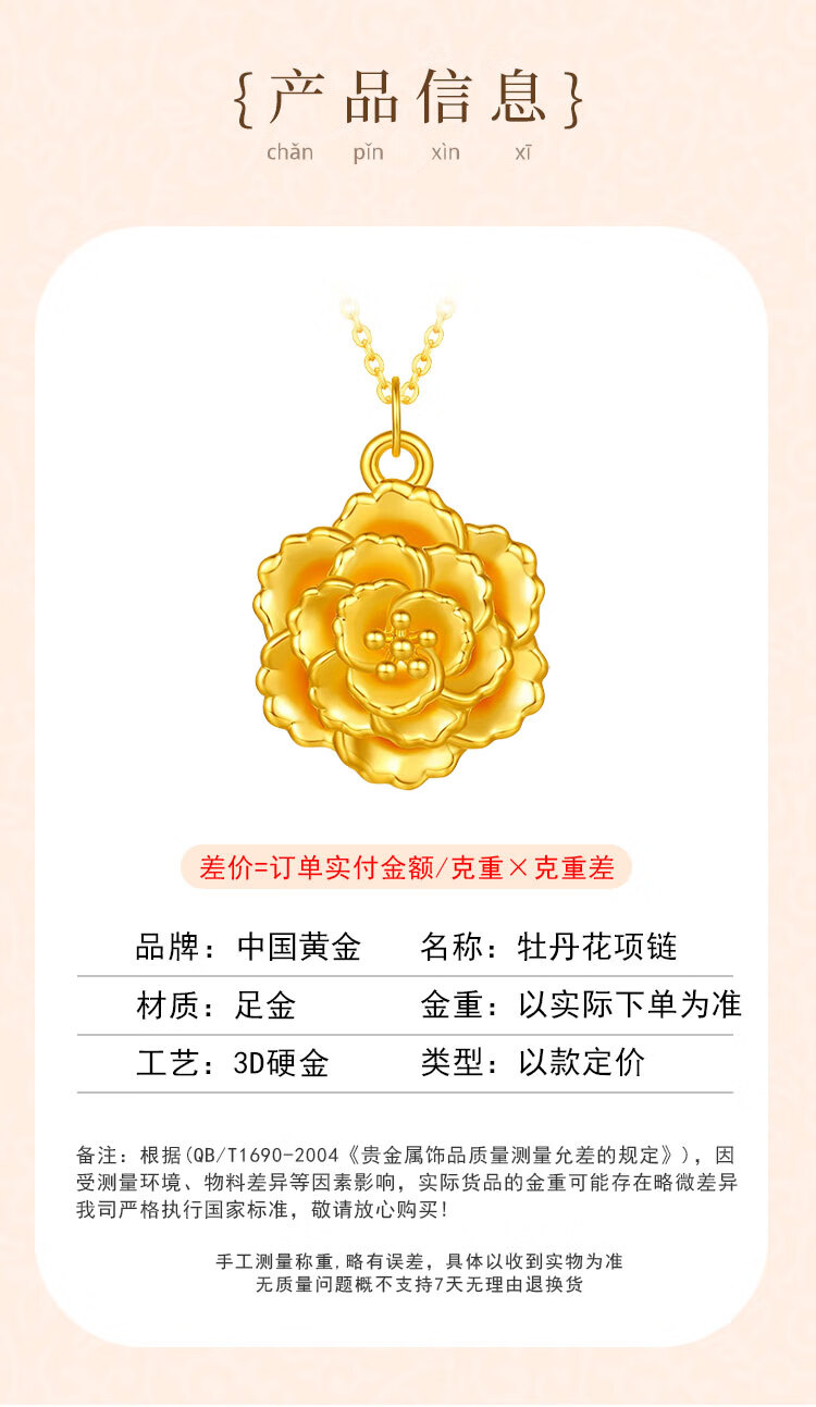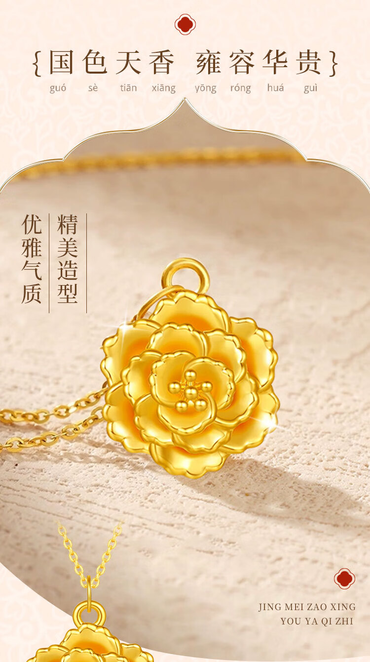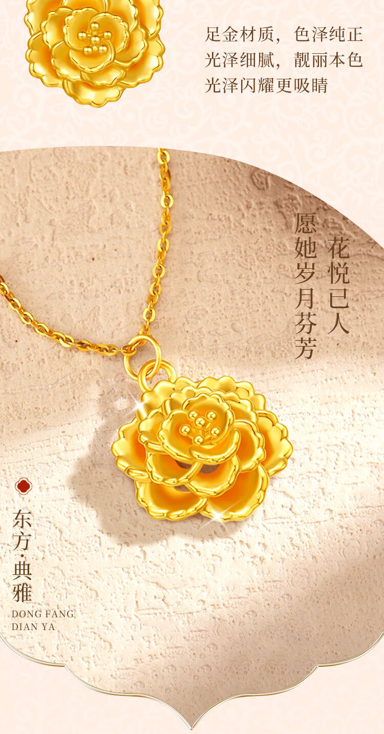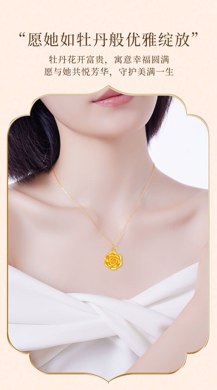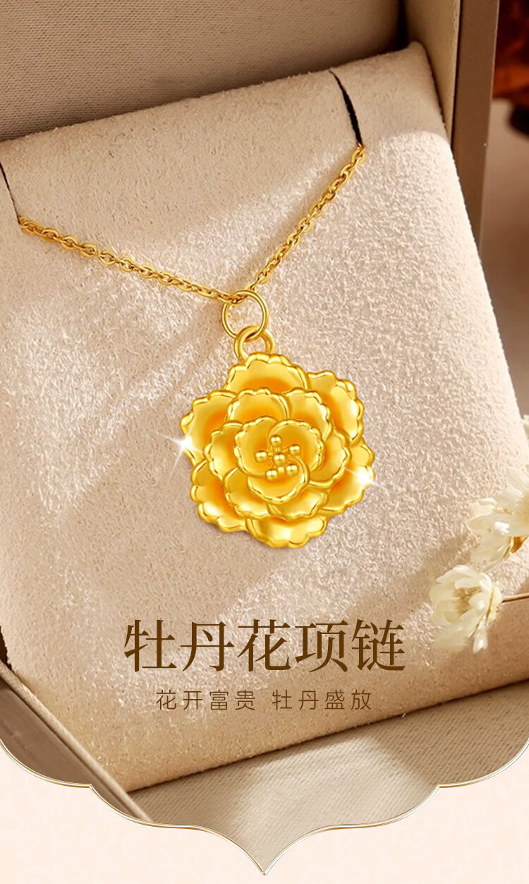 CHINA GOLD Pure Gold Peony Pendant Women's Flower Gold Necklace Clavicle Chain Valentine's Day Birthday Gift for My Girlfriend Mom Today/Next Day Delivery Peony Pendant + S925 Chain About 1g