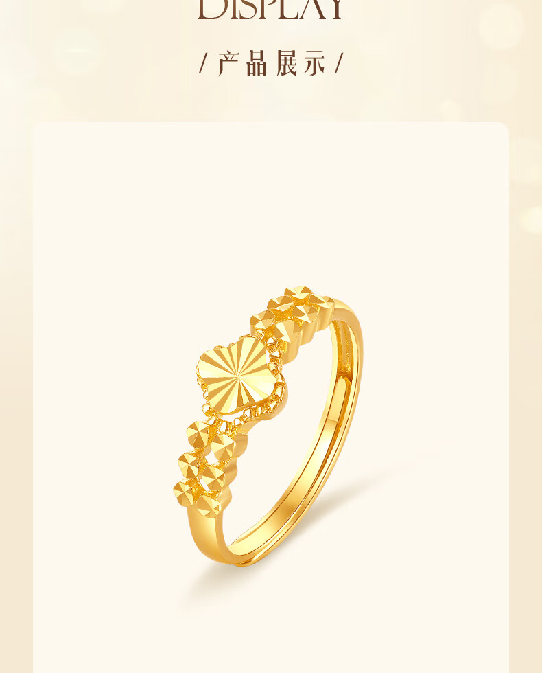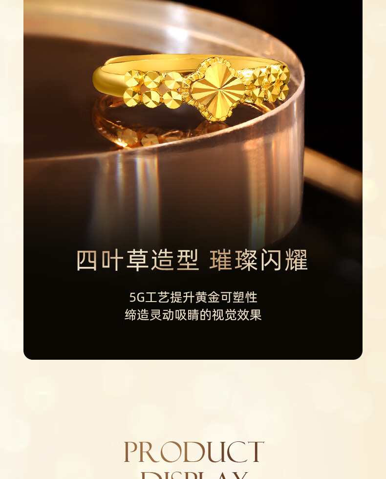 Zhongxin Jewelry Lucky Four-leaf Clover Car Flower Gold Ring Adjustable Pure Gold 999 Tail Ring Birthday Gift to Girlfriend Gold Jewelry Festival 3.2g