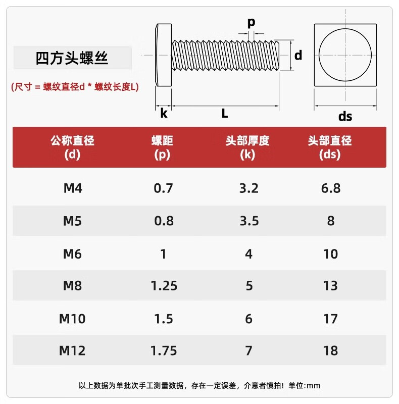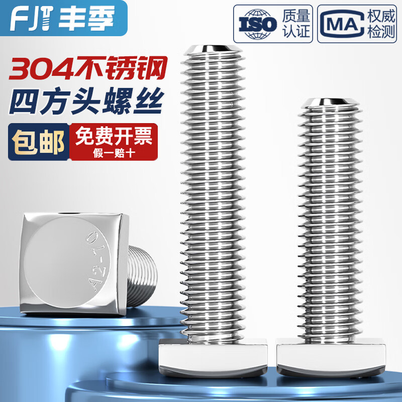 Fengji 304 stainless steel GB35 square head bolt small square head screw square screw square screw M5M6M8M10mm M12*30 (2 pieces)
