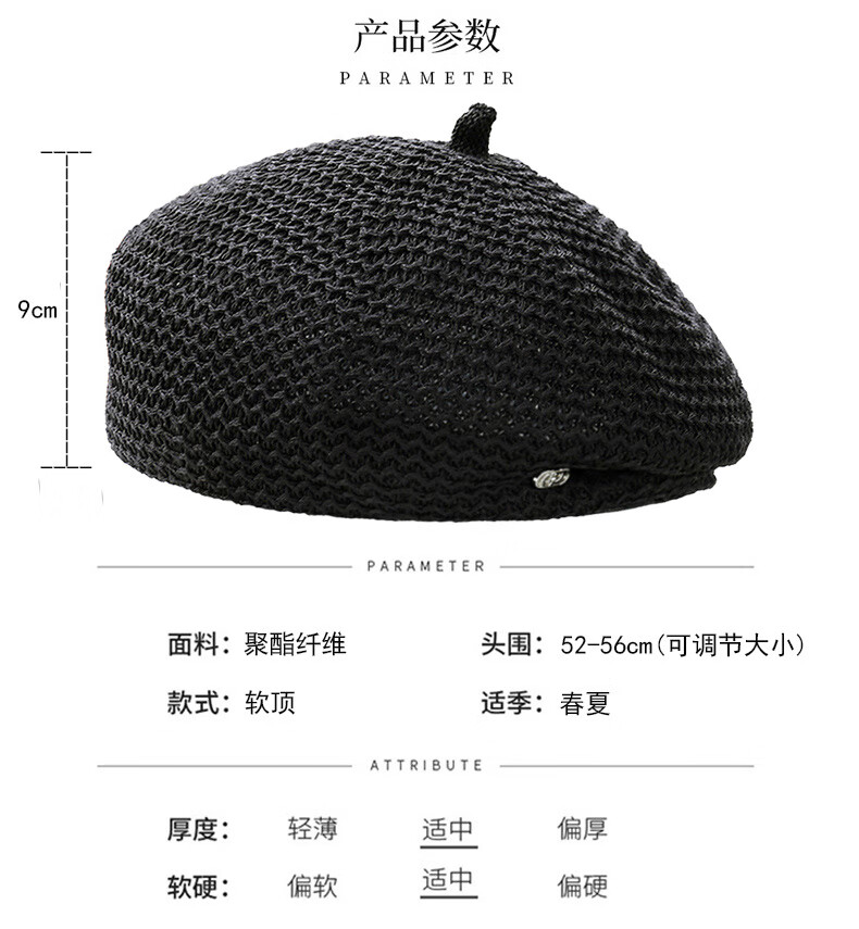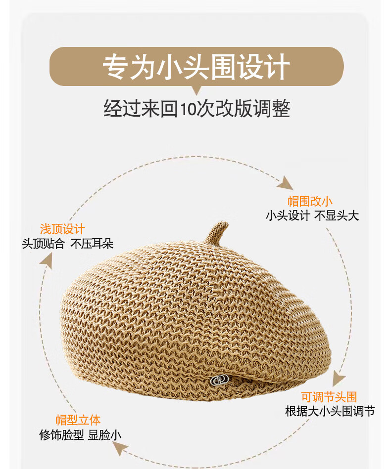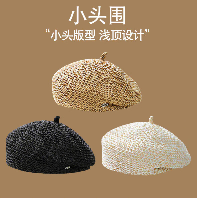 Techima beret summer small size small shallow top suitable for small head circumference hat xs52 fashionable style beret women's summer khaki small head size (5255cm) adjustable head circumference