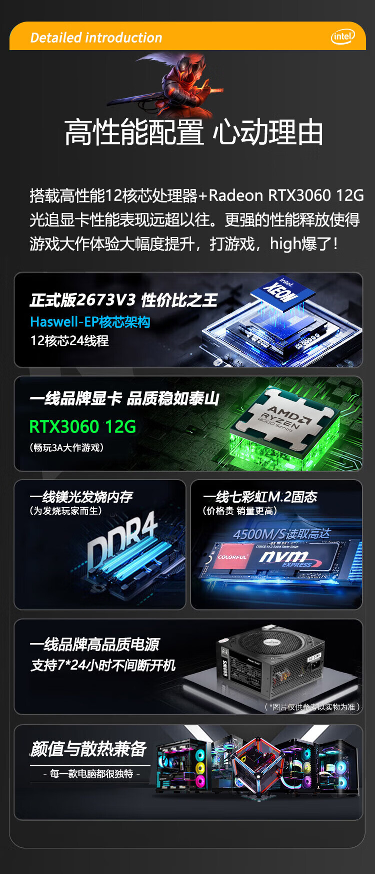 Colorful 12-core i9 high-end RTX3060 computer complete set of i7 eternal disaster gaming water-cooled assembly machine i5 office design desktop corporate procurement business home e-sports Internet cafe host package five i9-level 12-core + RTX3060 12G
