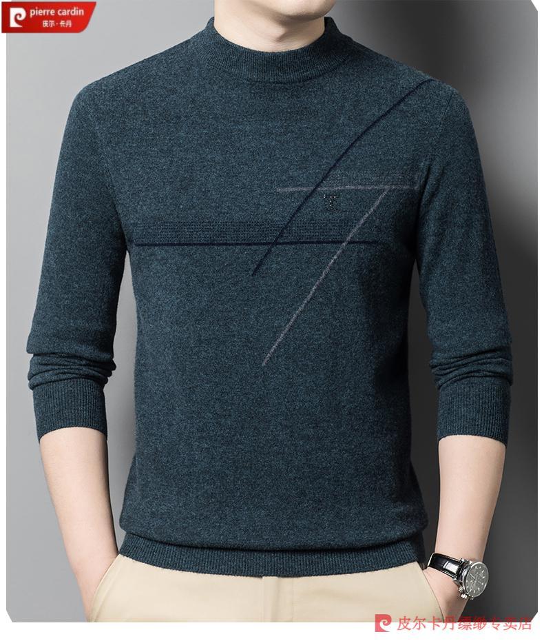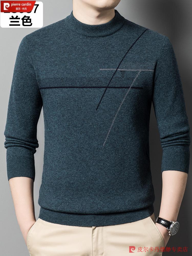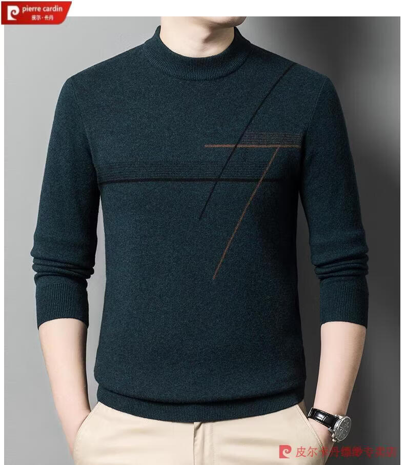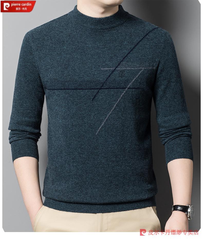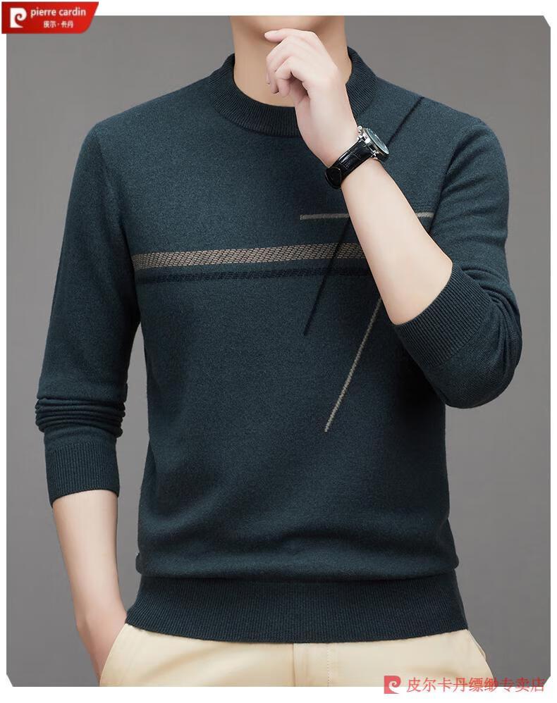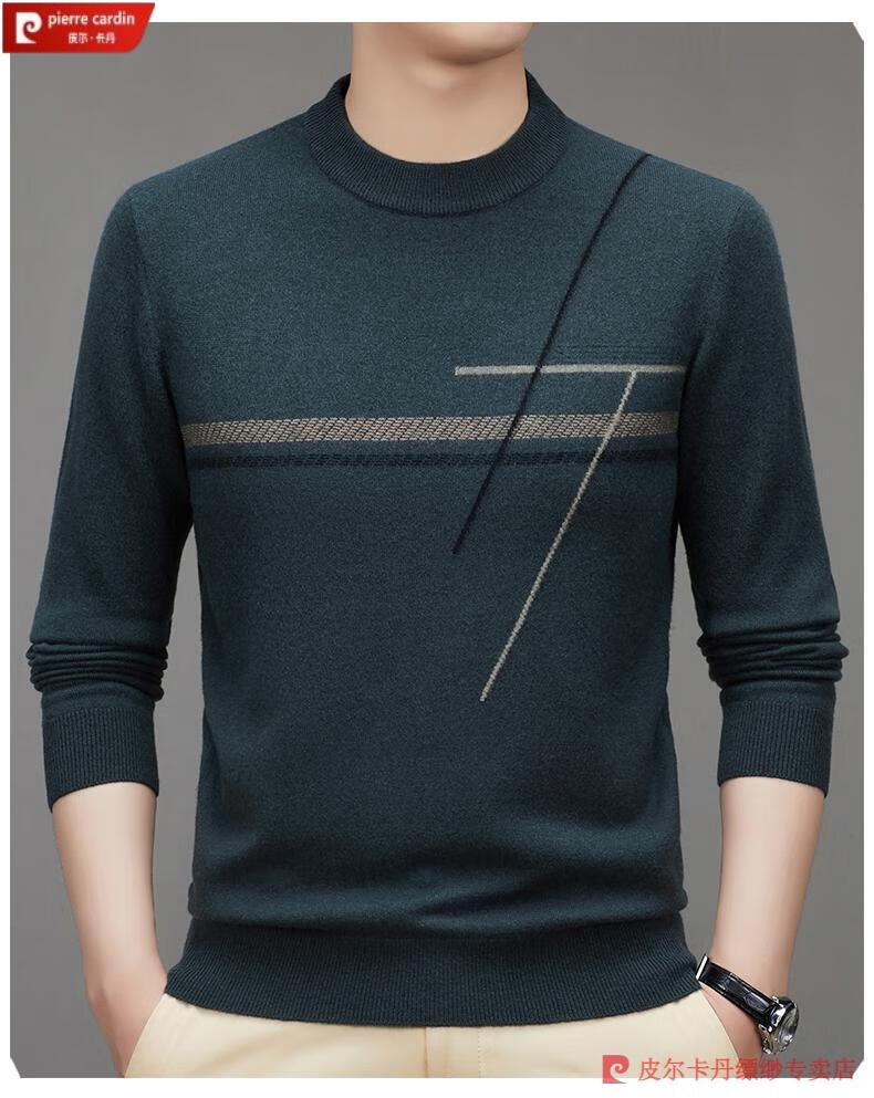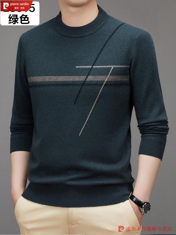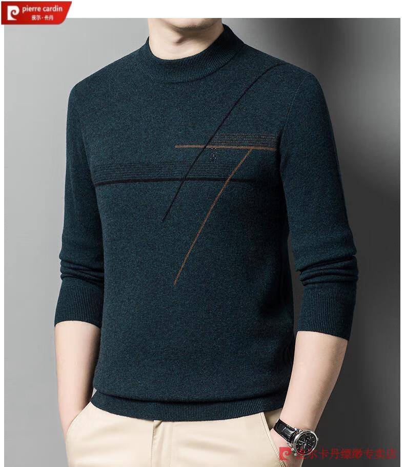 Pierre Cardin famous brand 100% pure cashmere sweater for men thickened autumn and winter men's cashmere sweater with base layer knitted green hair 23015 175/XL suitable for weight 135-155Jin Jin equals 0.5 kg