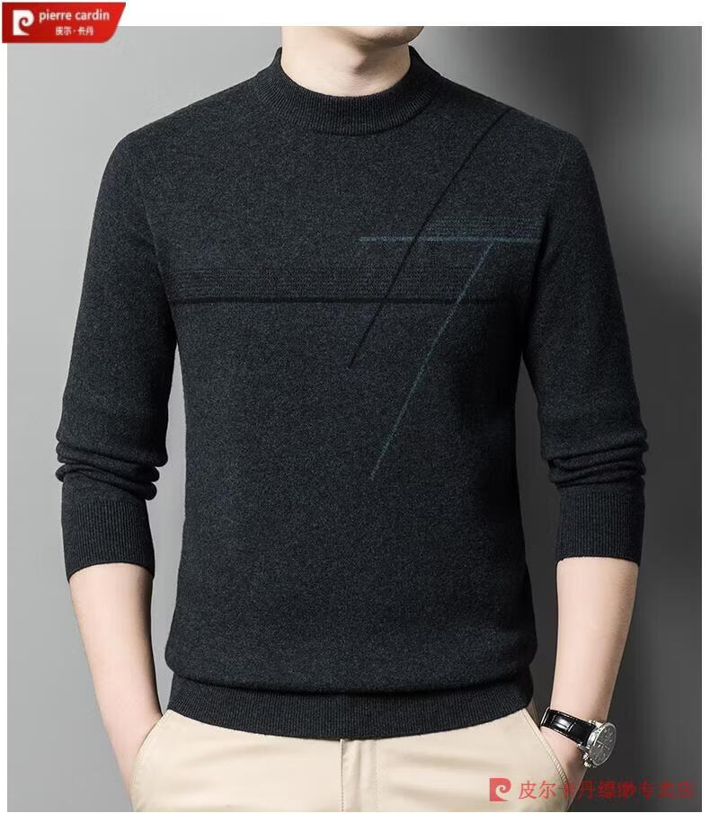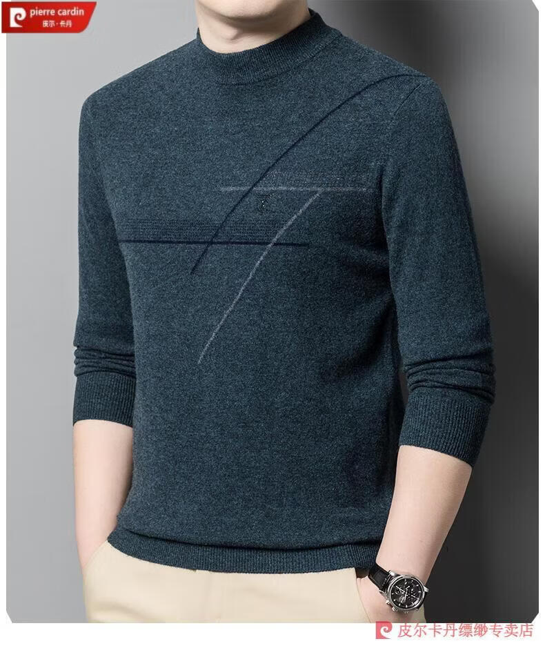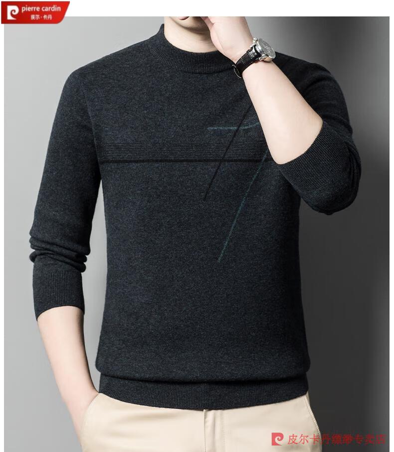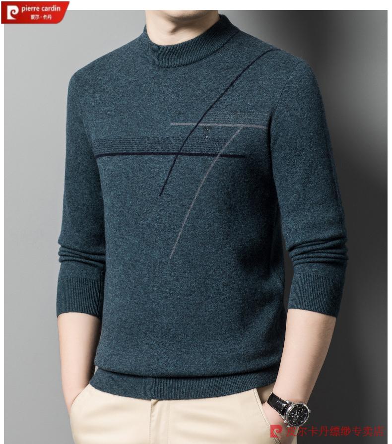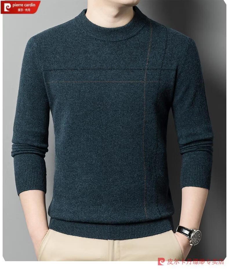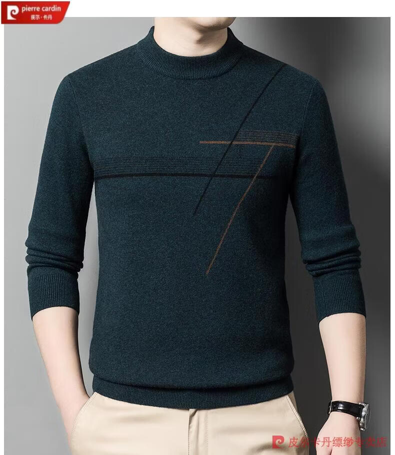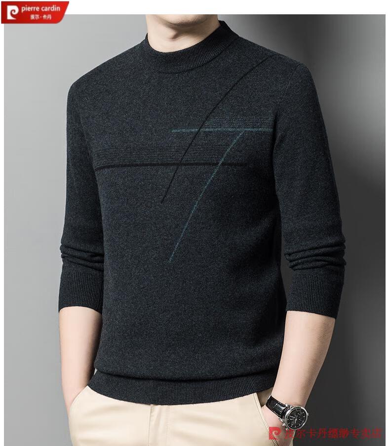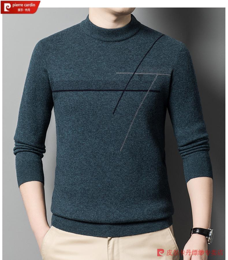 Pierre Cardin famous brand 100% pure cashmere sweater for men thickened autumn and winter men's cashmere sweater with base layer knitted green hair 23015 175/XL suitable for weight 135-155Jin Jin equals 0.5 kg