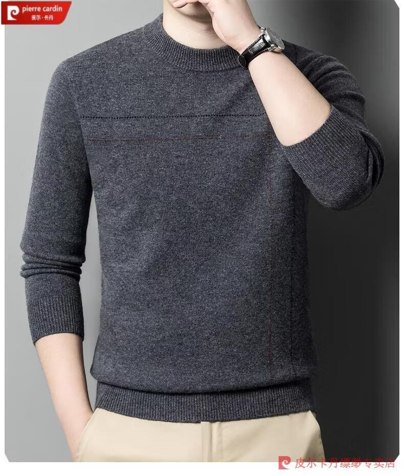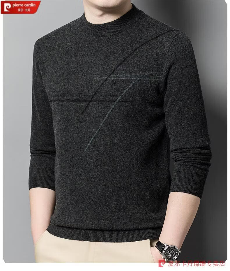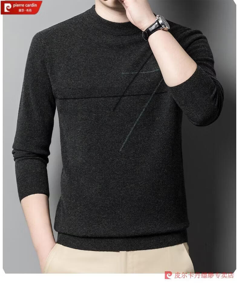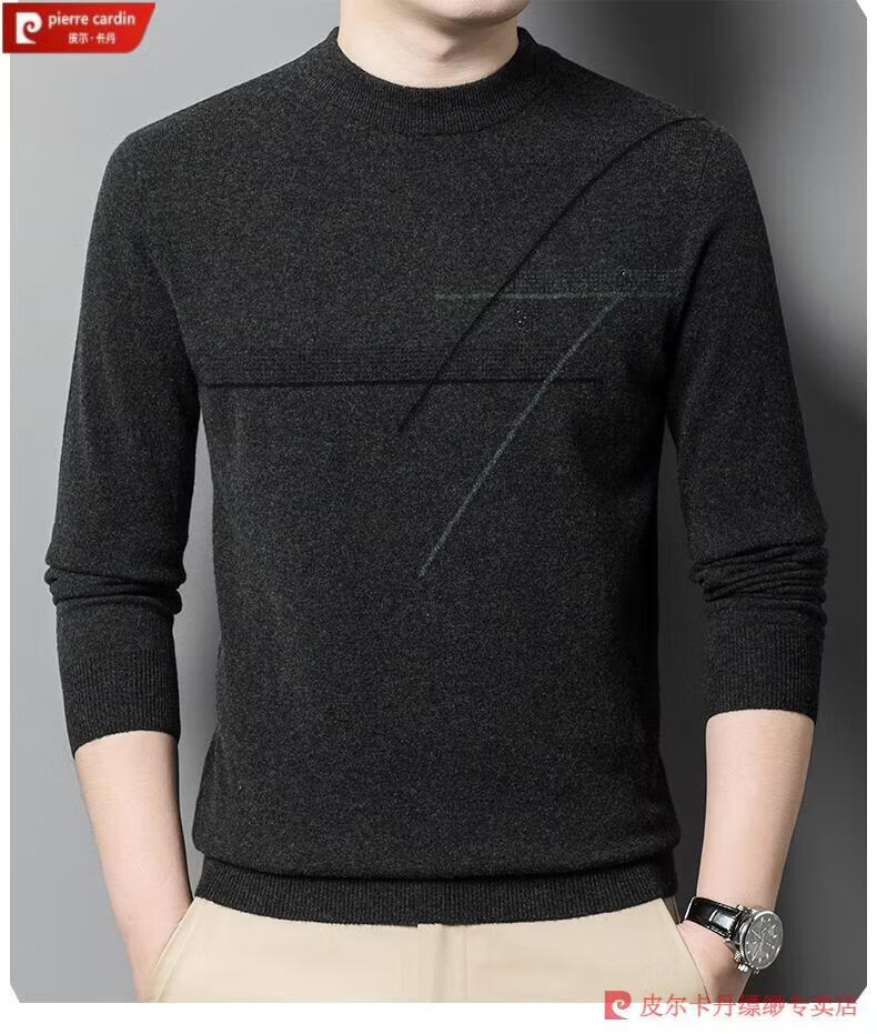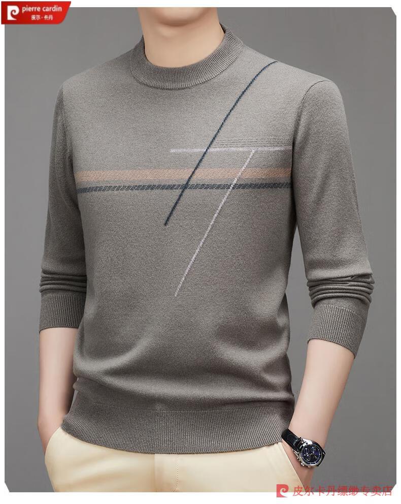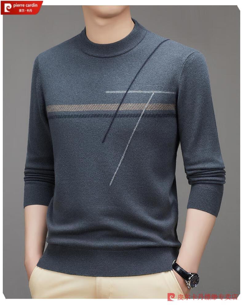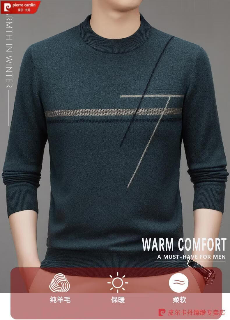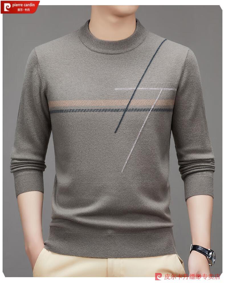 Pierre Cardin famous brand 100% pure cashmere sweater for men thickened autumn and winter men's cashmere sweater with base layer knitted green hair 23015 175/XL suitable for weight 135-155Jin Jin equals 0.5 kg
