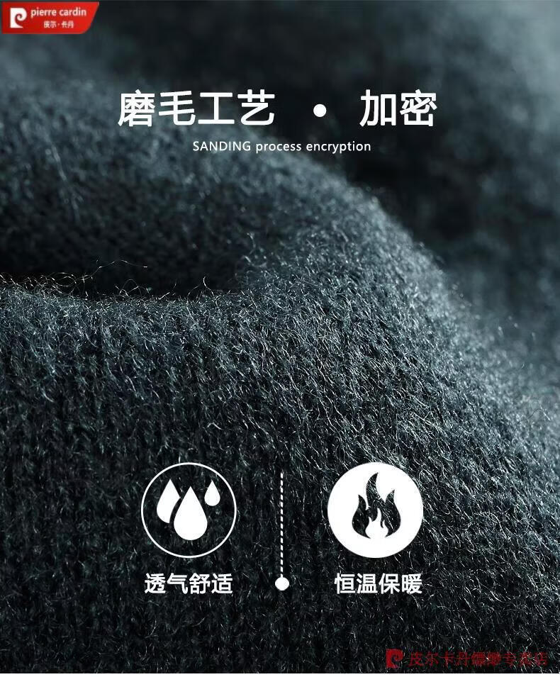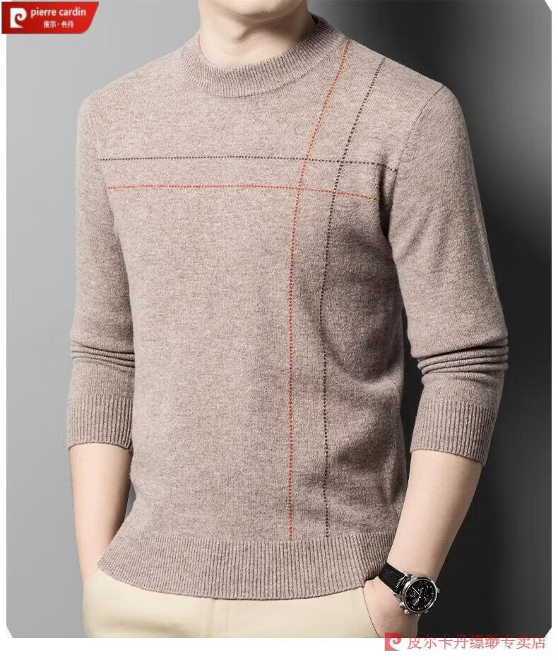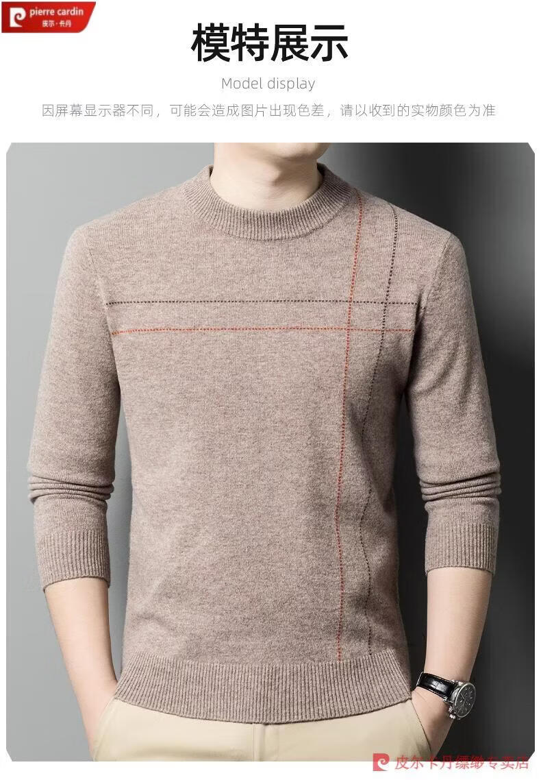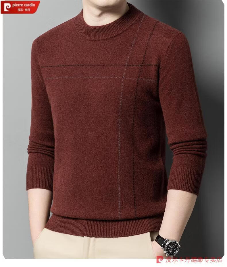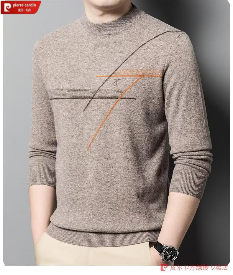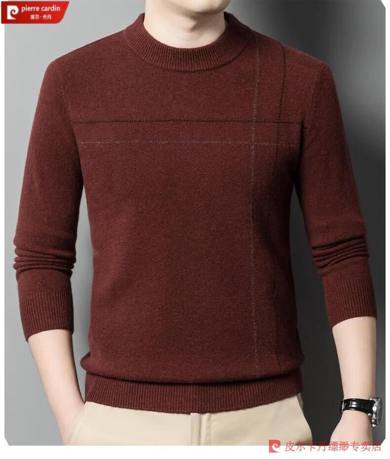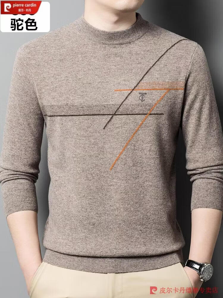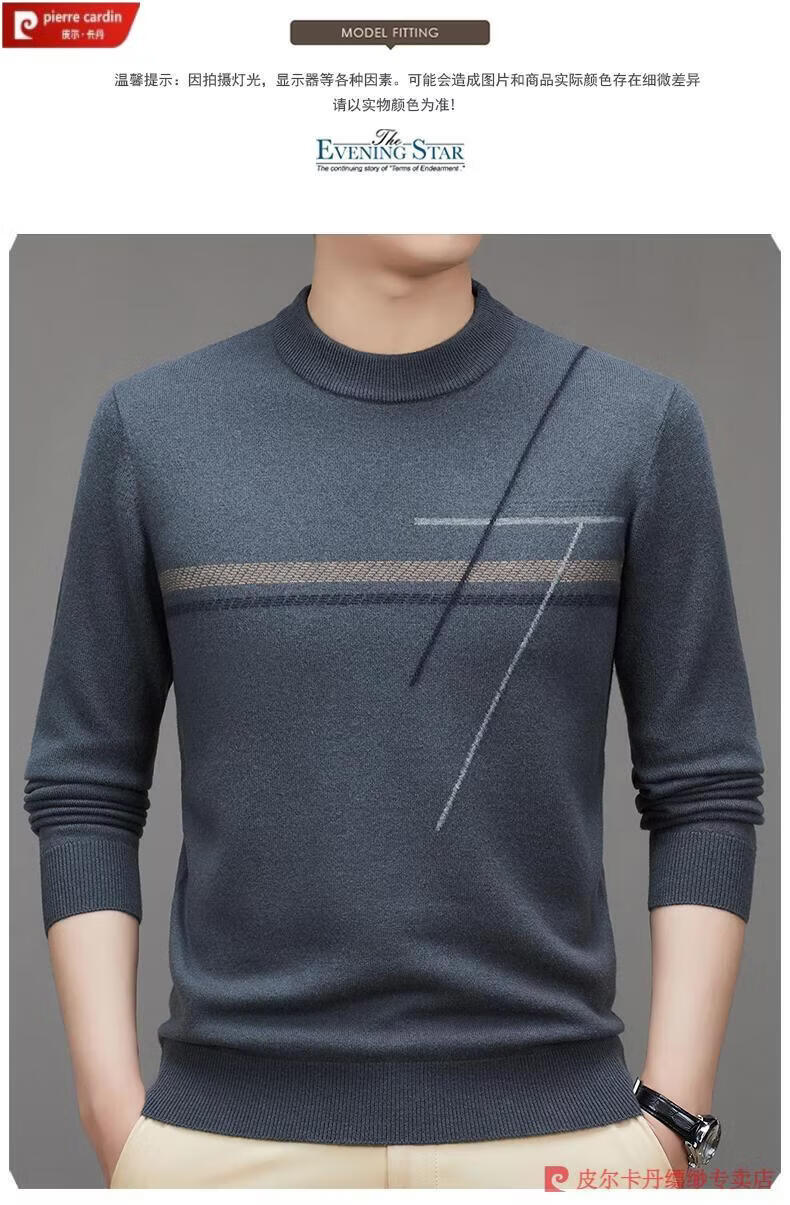 Pierre Cardin famous brand 100% pure cashmere sweater for men thickened autumn and winter men's cashmere sweater with base layer knitted green hair 23015 175/XL suitable for weight 135-155Jin Jin equals 0.5 kg