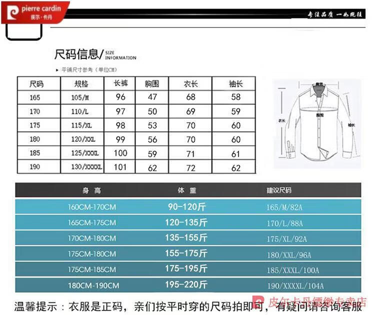 China (cm) 165 / 88-90 170 / 96-98 175 / 108-110 180 / 118-122 185 / 126-130