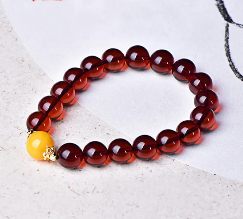 Layun Feiyin Blood Amber Bracelet Wine Red Women's Single Circle Chicken Oil Yellow Old Beeswax with Beads No Baking Worry-Free 10mm Blood Amber