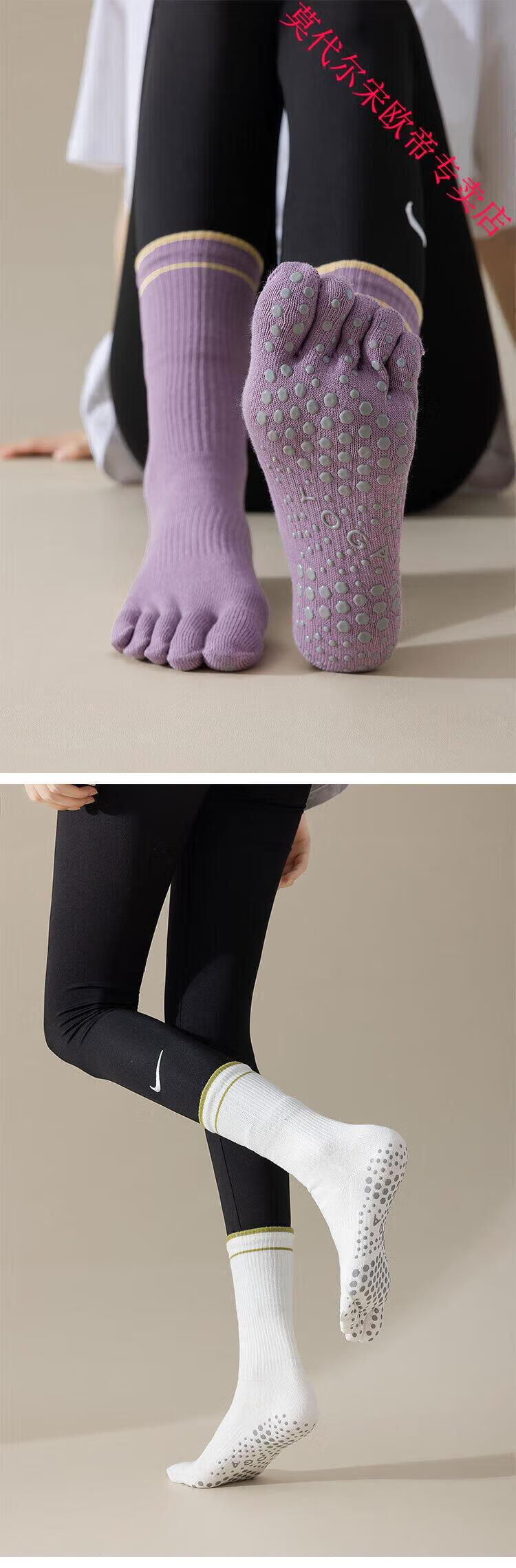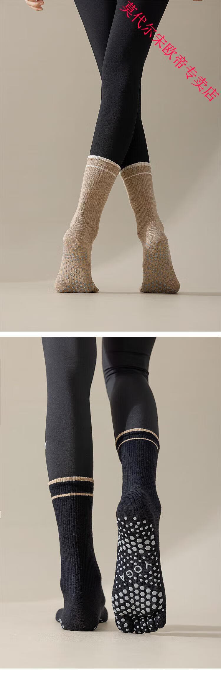 Modal striped long yoga socks five-finger Pilates socks non-slip women's mid-calf sports split toe boneless socks black (package) 2 pairs