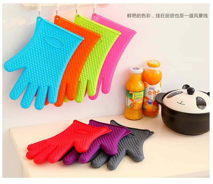Huili's customized hot gloves silicone waterproof baking pan oven gloves anti-scalding thickened anti-slip microwave oven gloves anti-scalding household thickened 19x29cm blue 2 pieces 295g high temperature resistance
