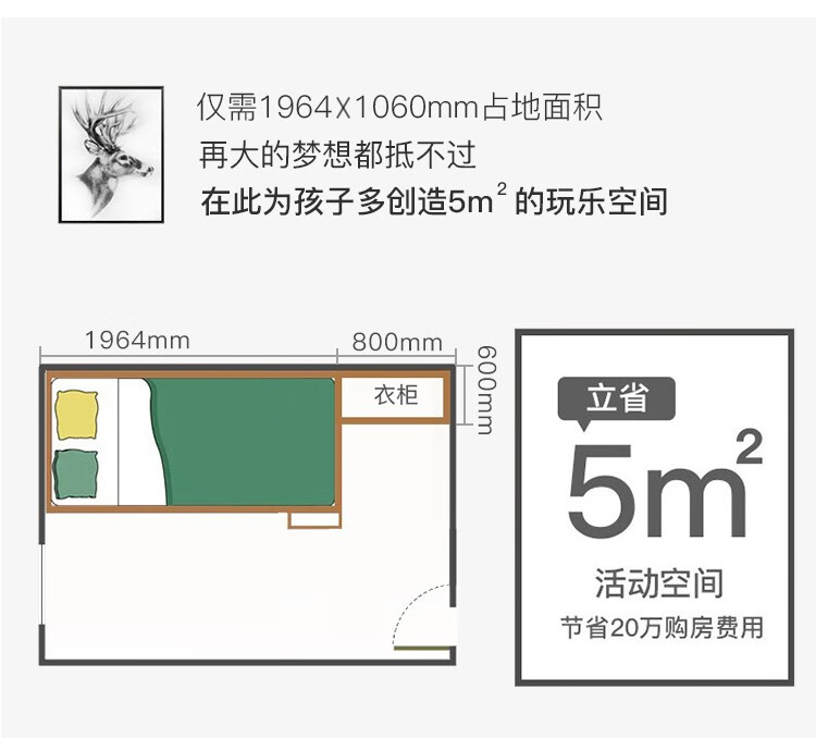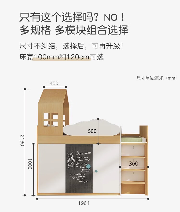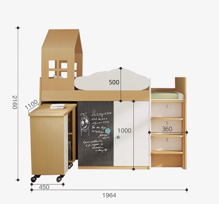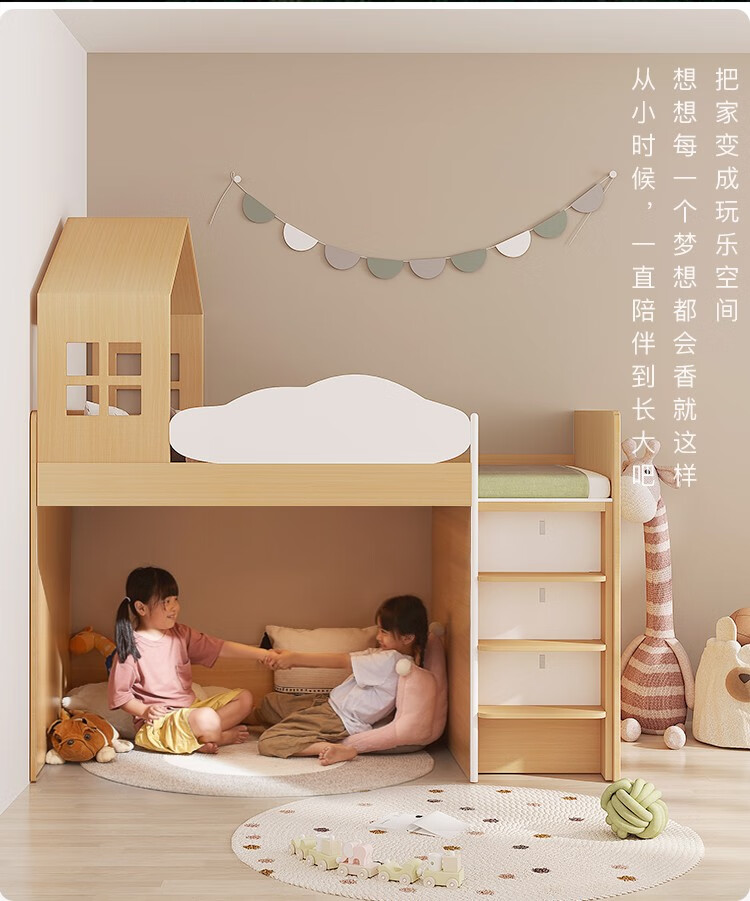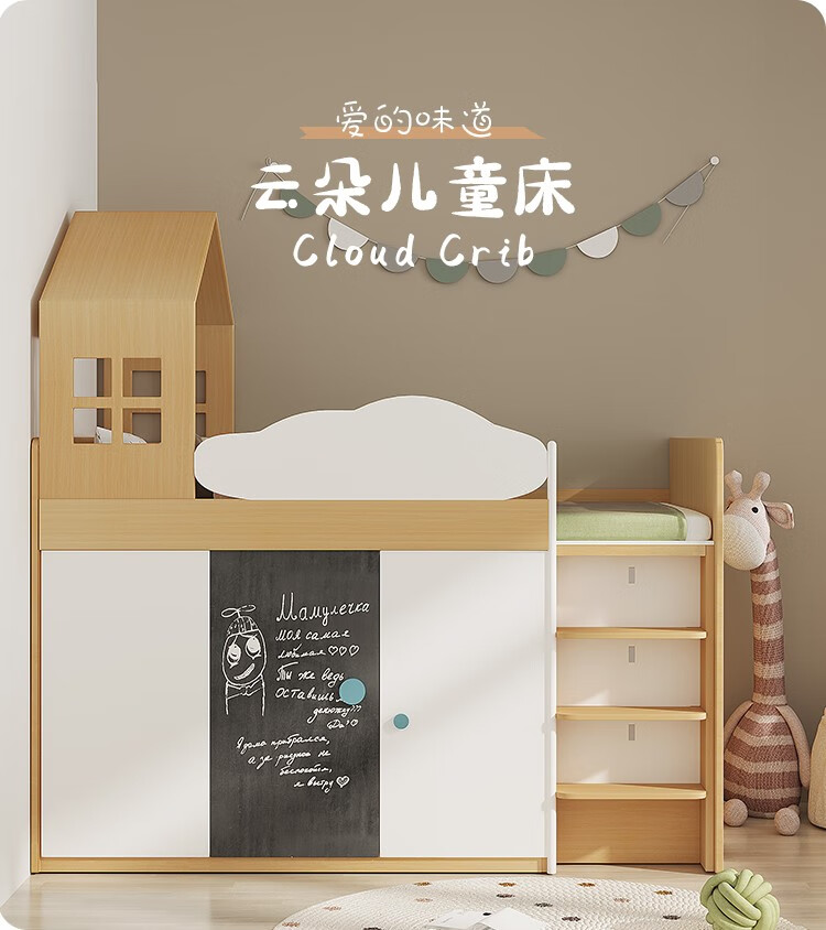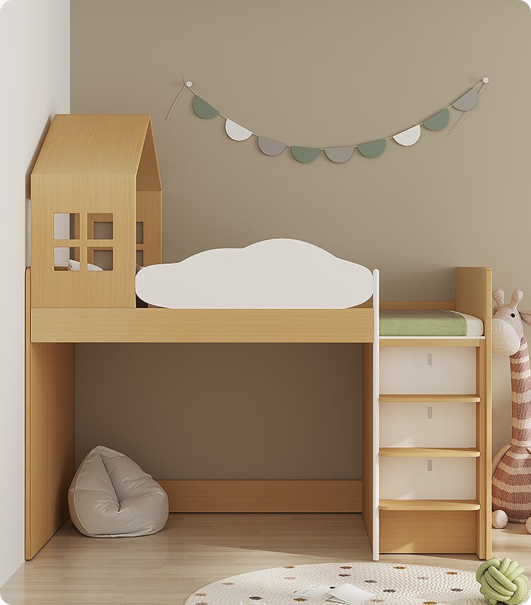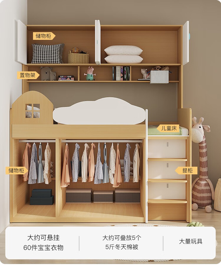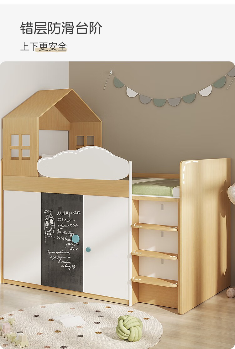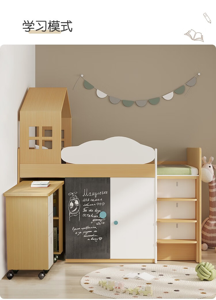 Koala Forest multi-functional storage children's half-height bed and under-bed cabinet storage storage bed small apartment with desk integrated medium-high bed wardrobe + roof 1200*1900