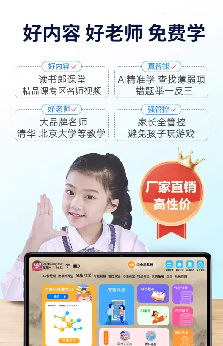 Alpha Number One Star Alpha Intelligent Learning Machine from first grade to high school Tablet Computer Student English Point Reading Machine Online Class Tutoring Machine Early Education Machine Learning and Training Machine All-in-one Machine New 12 4K Speedy Running Star Yao Silver 64GB Original Genuine Genuine Textbooks Free