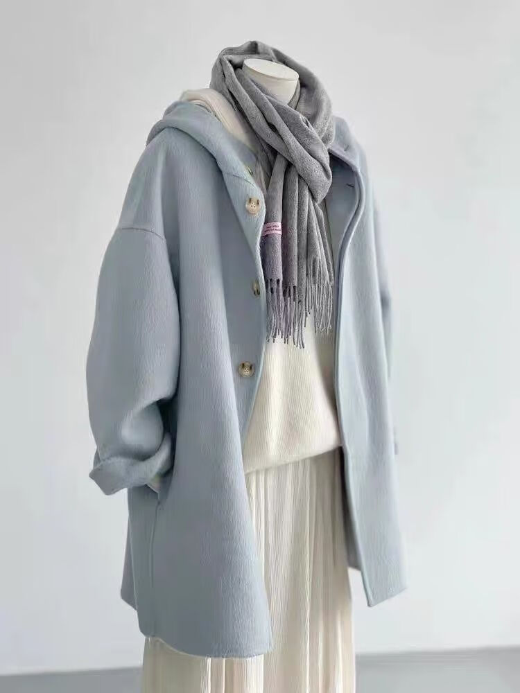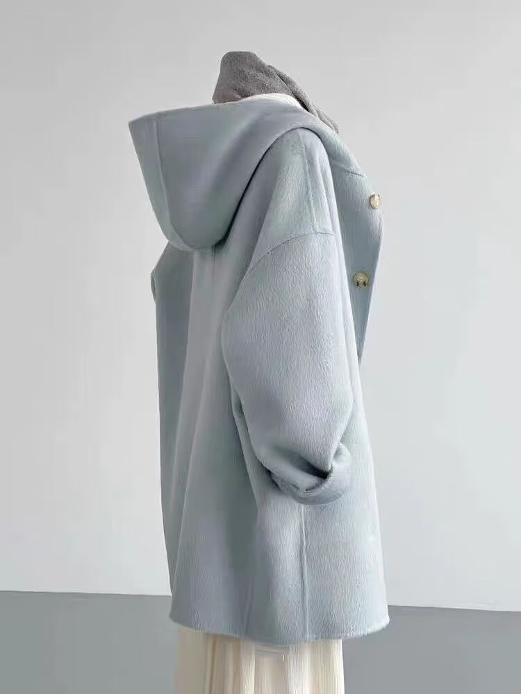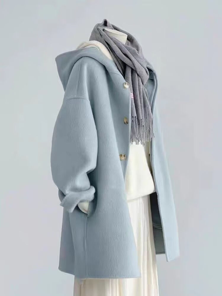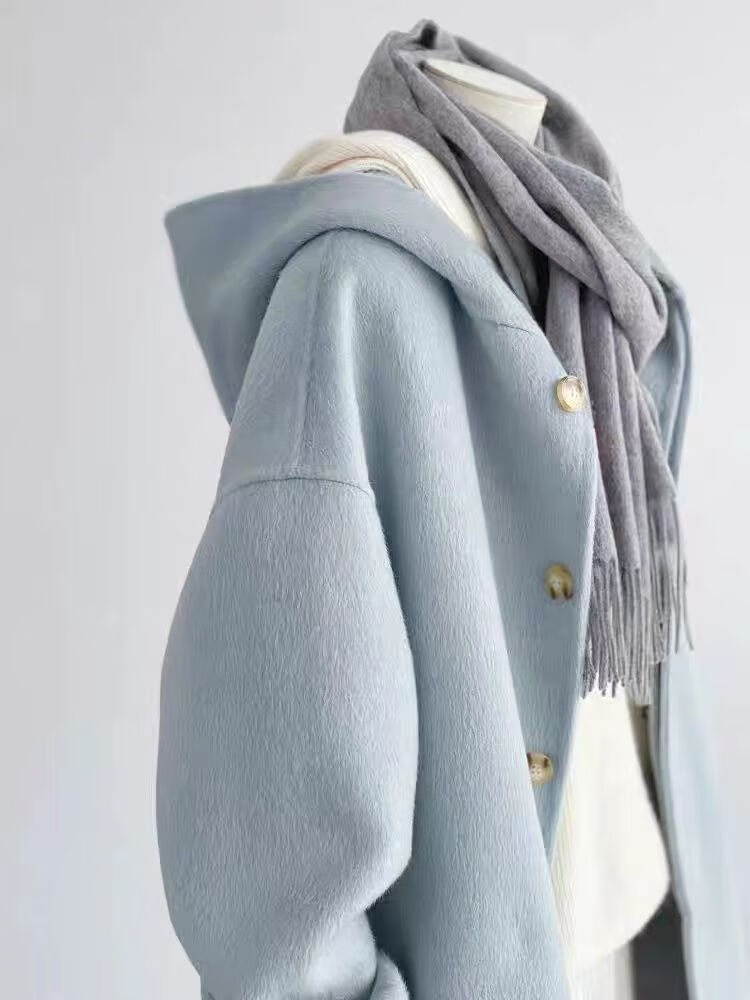 Romont large size 300Jin Jin is equal to 0.5kg Hepburn style woolen coat for men and women winter high-end foreign style mid-length hooded woolen coat 2 picture color L