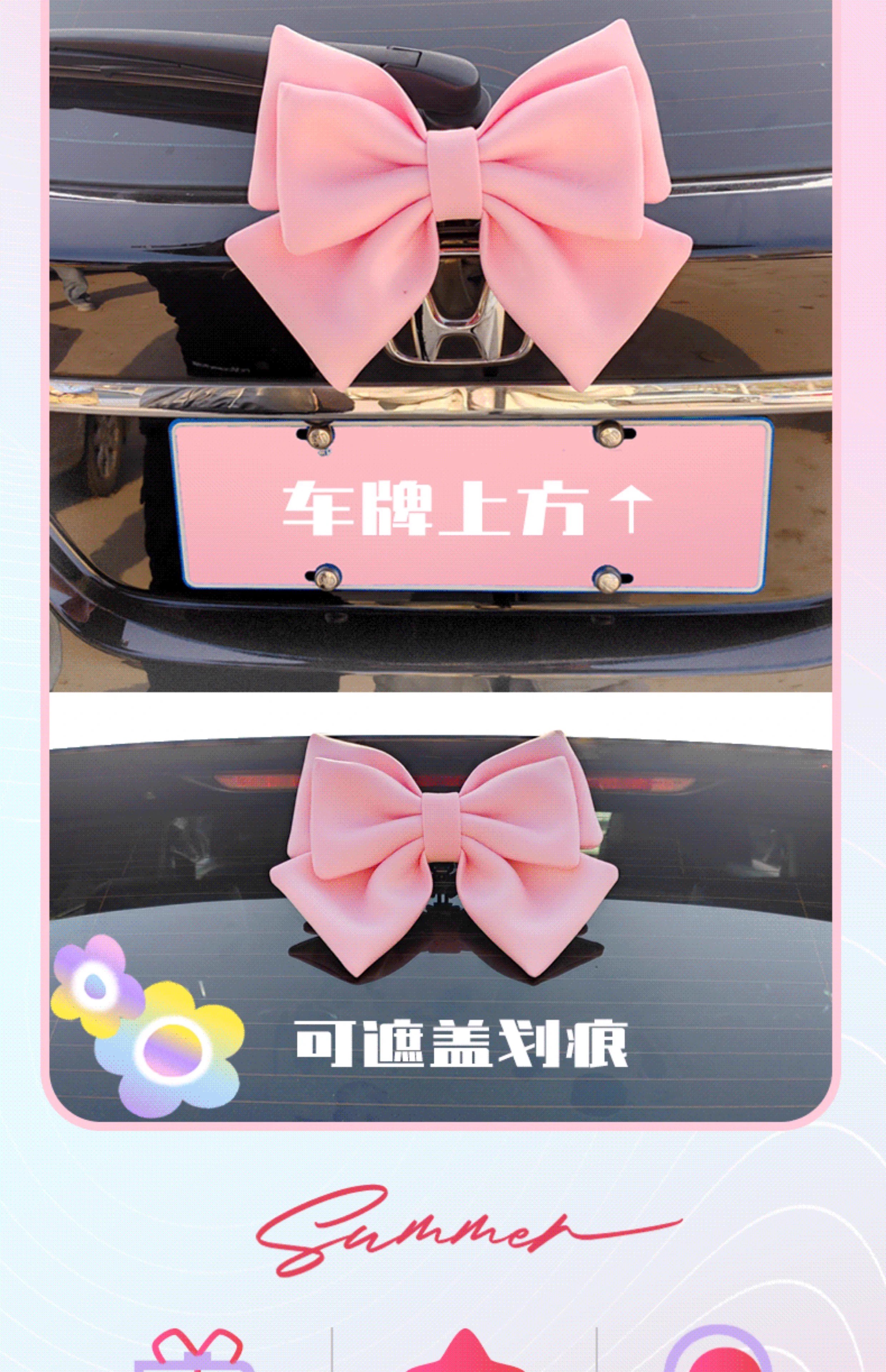 CLCEY car tail bow decoration pendant tail car sticker jewelry car motorcycle doll ornaments car doll rose red double bow (gopro bracket version)