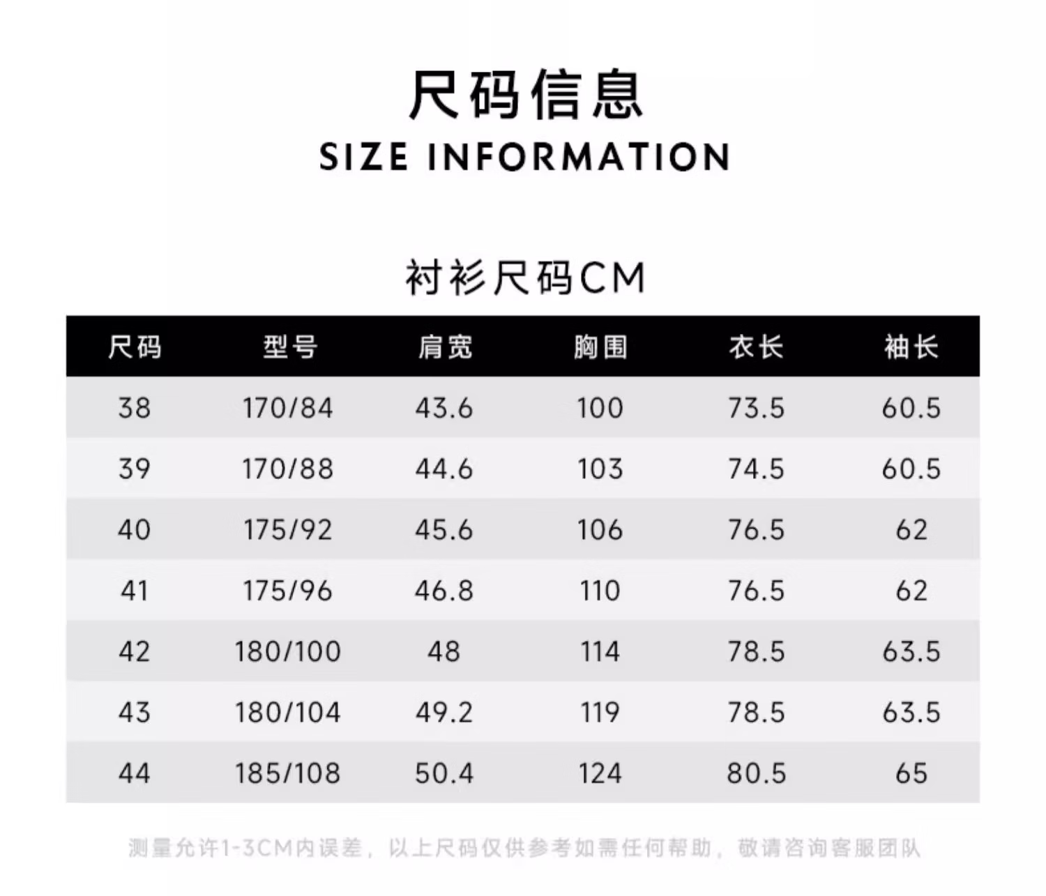 China (cm) 160-165/84-86 165-170 / 88-90 167-172 / 92-96 168-173 / 98-102 170-176 / 106-110