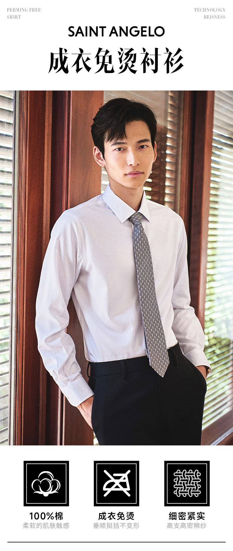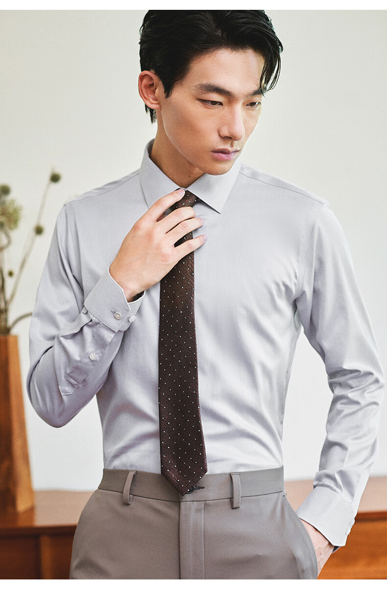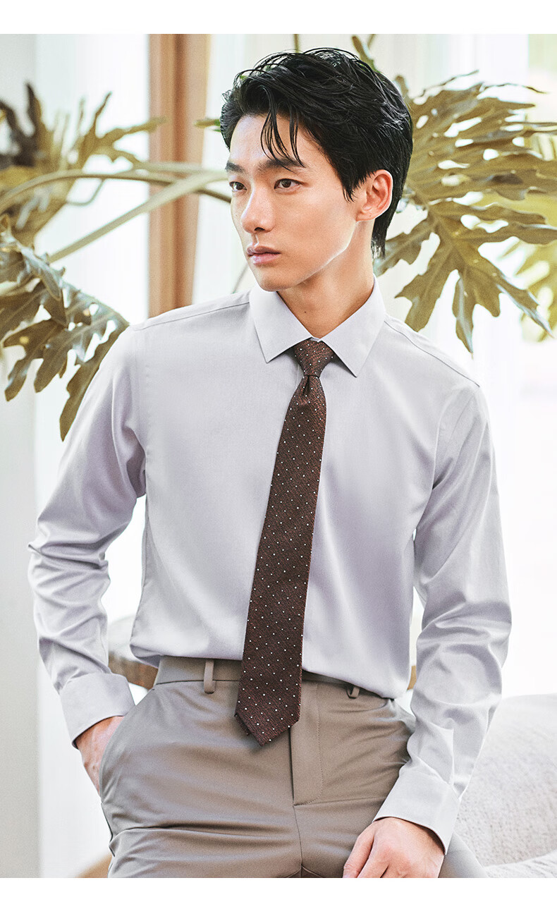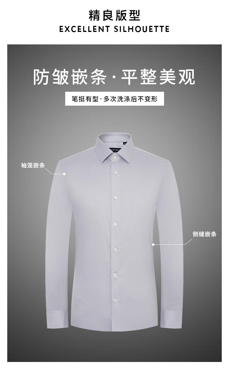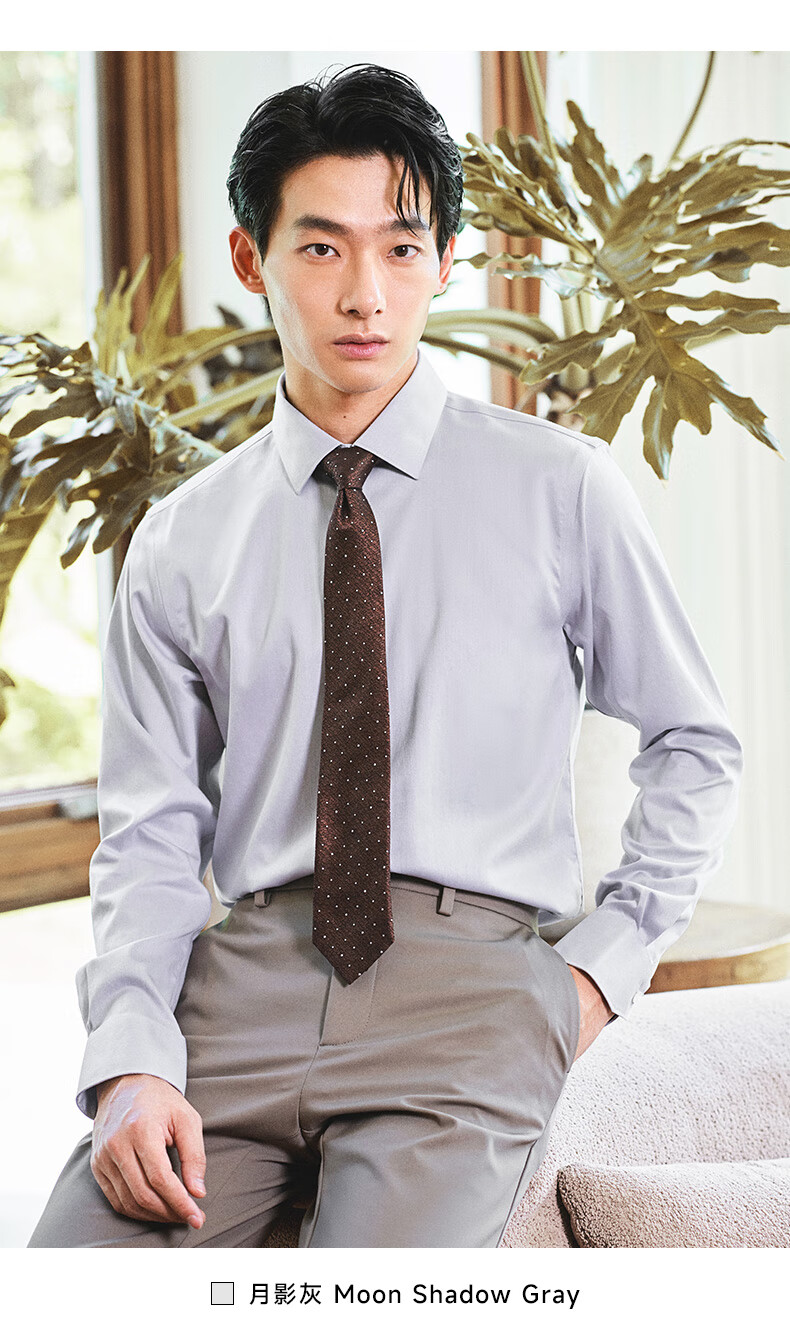 Angel Bird formal shirt men's high count no ironing autumn style men's business formal pure cotton commuting long-sleeved shirt men's moon shadow gray 41 (175/96)
