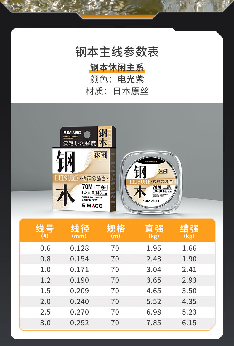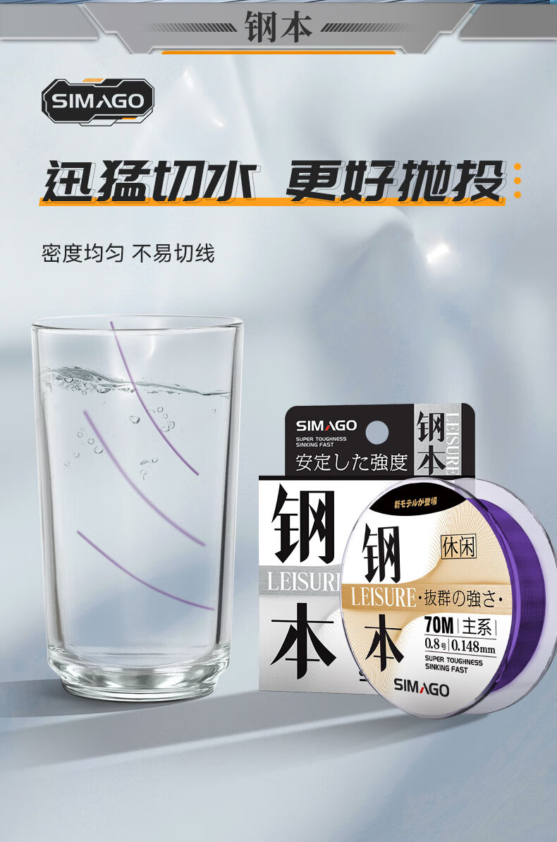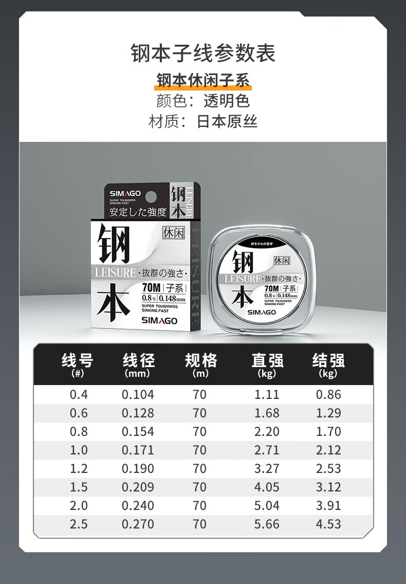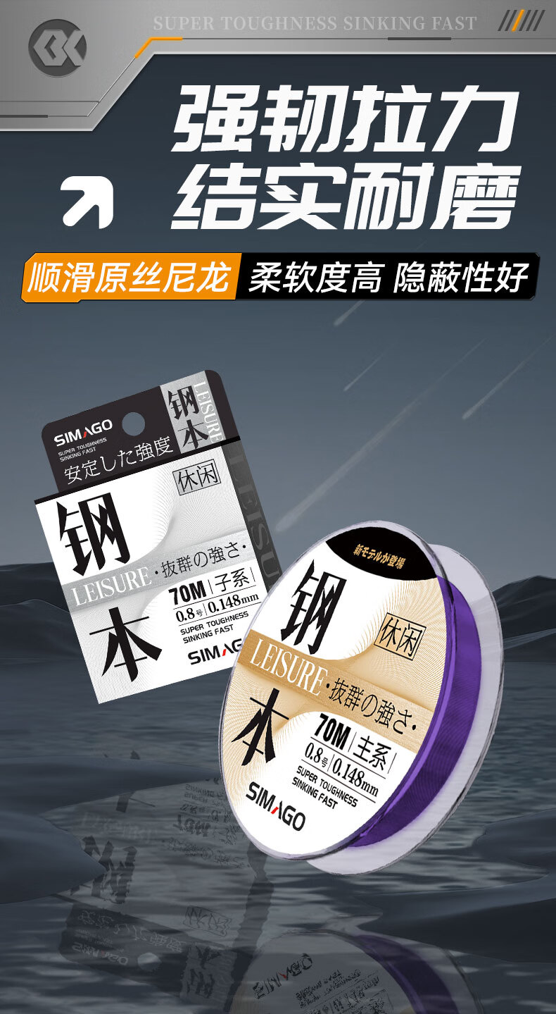 SIMAGO fishing line imported from Japan, strong main line, wear-resistant sub-line, black pit platform fishing, non-rolled nylon line, fishing line, fast water cutting, 70 meters steel leisure model - main line, strong pulling force, line number 0.6