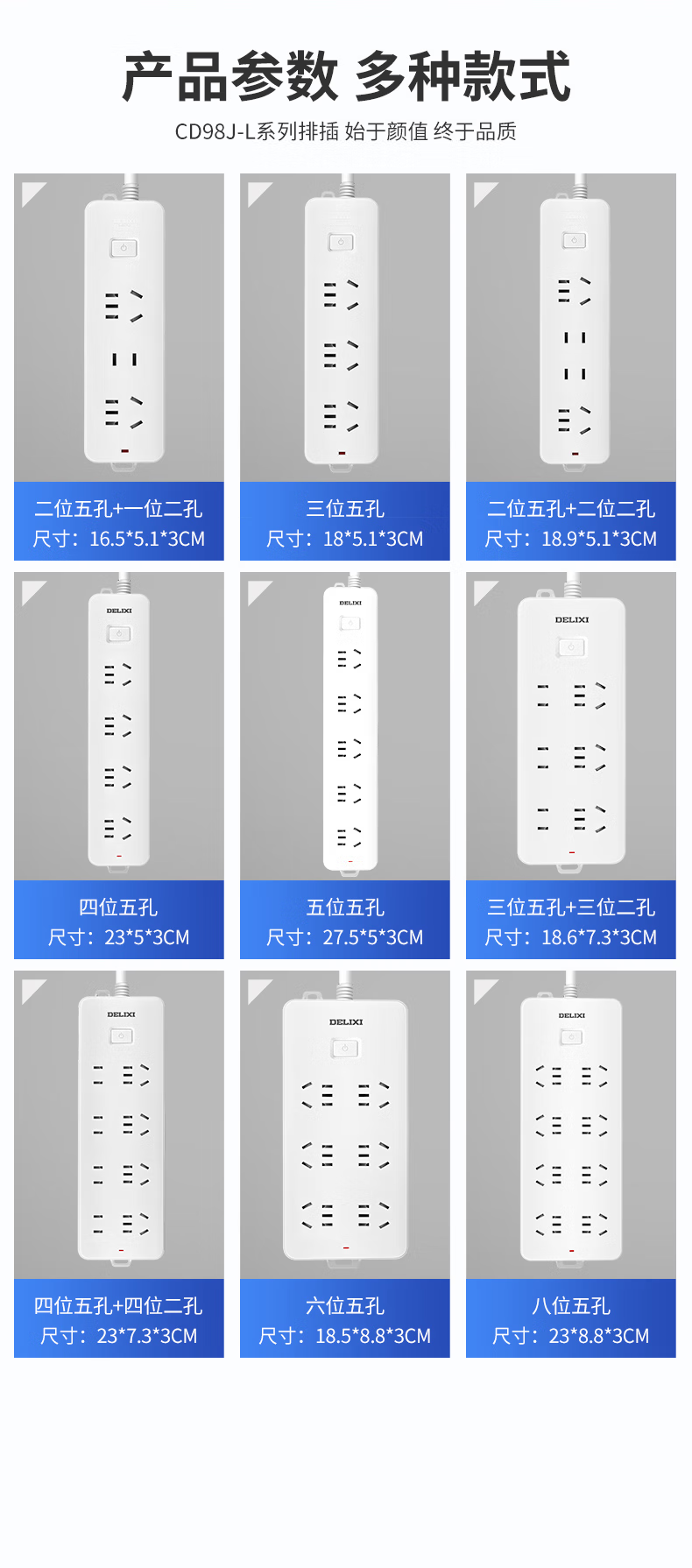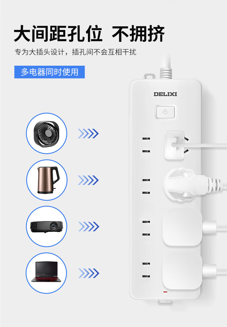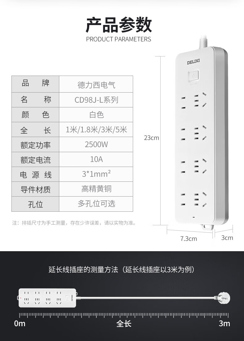 Delixi (DELIXI) national standard socket/socket strip/socket strip/socket board/pull line board/socket line board 3-position combination total control 1.8 meters