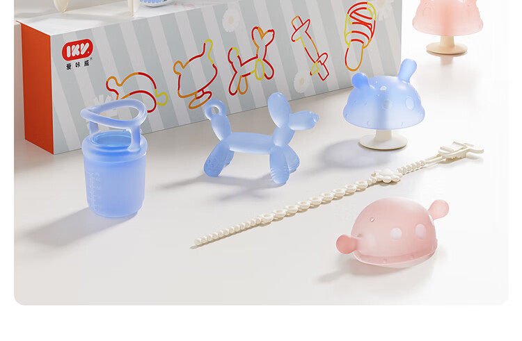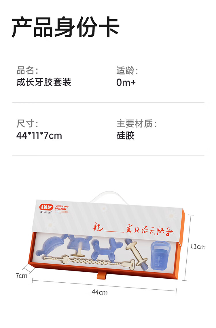 IKV baby teether for small months, anti-eating, mouth-appropriate period comfort chewing gum, newborn meeting gift, blue-100-day gift box teether