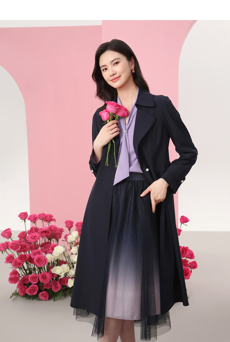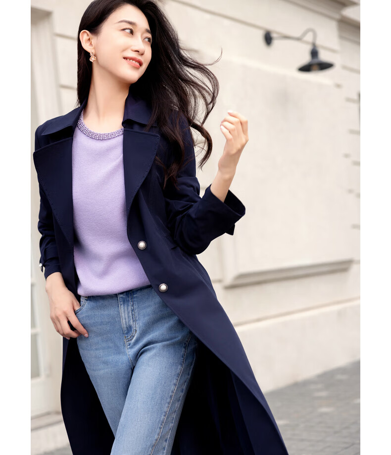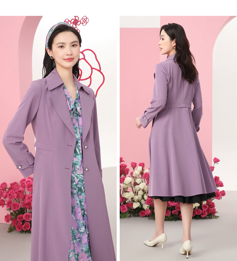 Collatier's classic and versatile windbreaker jacket for women solid color mid-length top Medium Violet XL