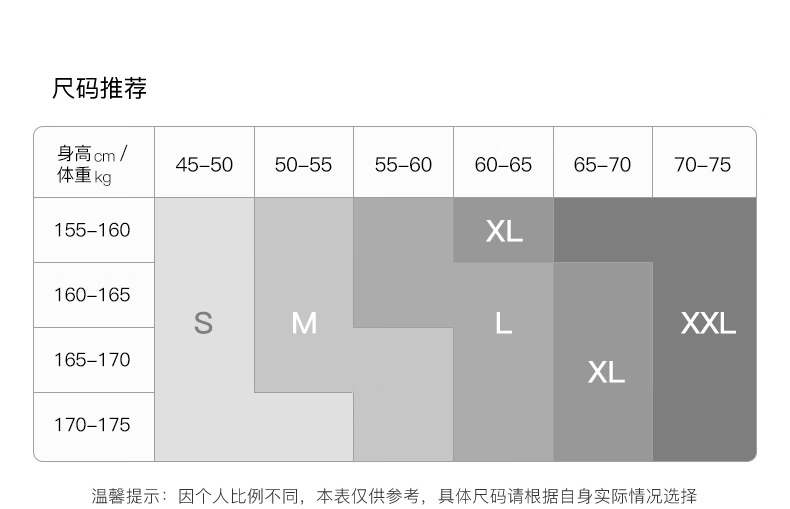 China (cm) 160-165/84-86 165-170 / 88-90 167-172 / 92-96 168-173 / 98-102 170-176 / 106-110