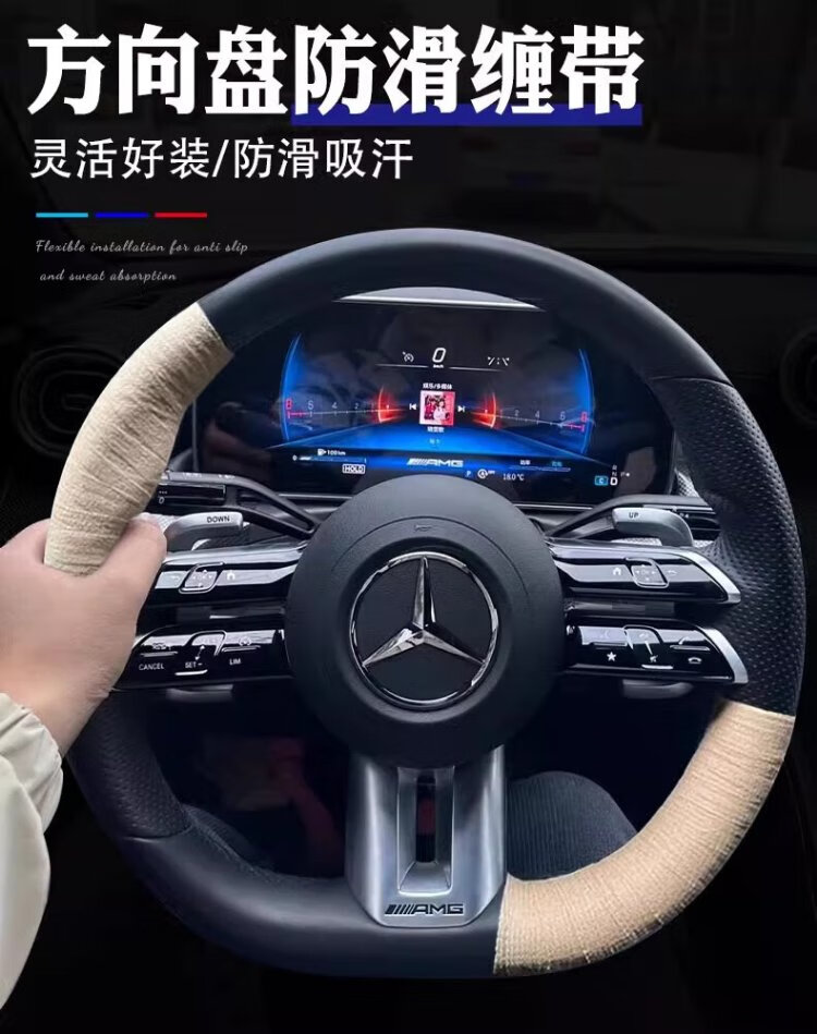 Jingge steering wheel strap wrap car non-slip sweat-absorbent ultra-thin leather handbrake handlebar truck strap universal black anti-skid sweat-absorbent breathable 5cm wide * 4.5m long recommended to buy 2 rolls
