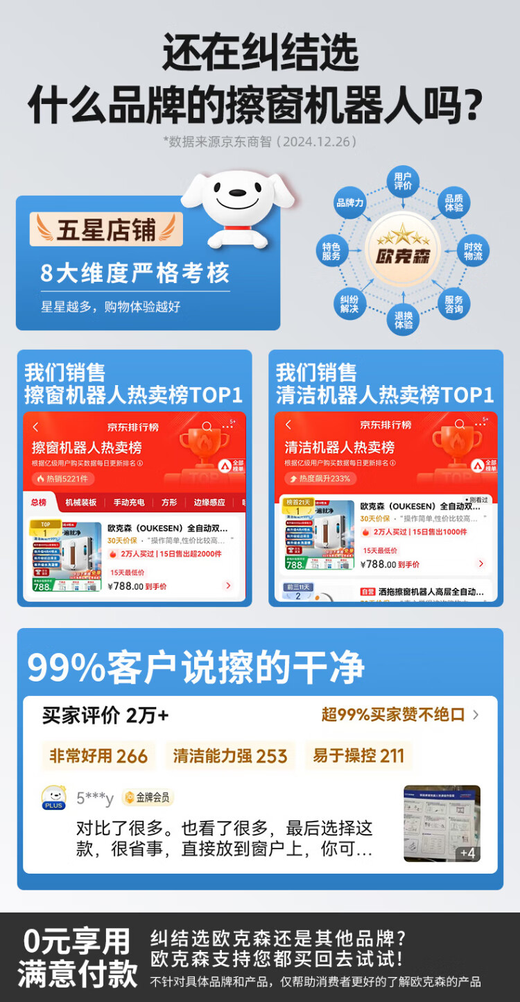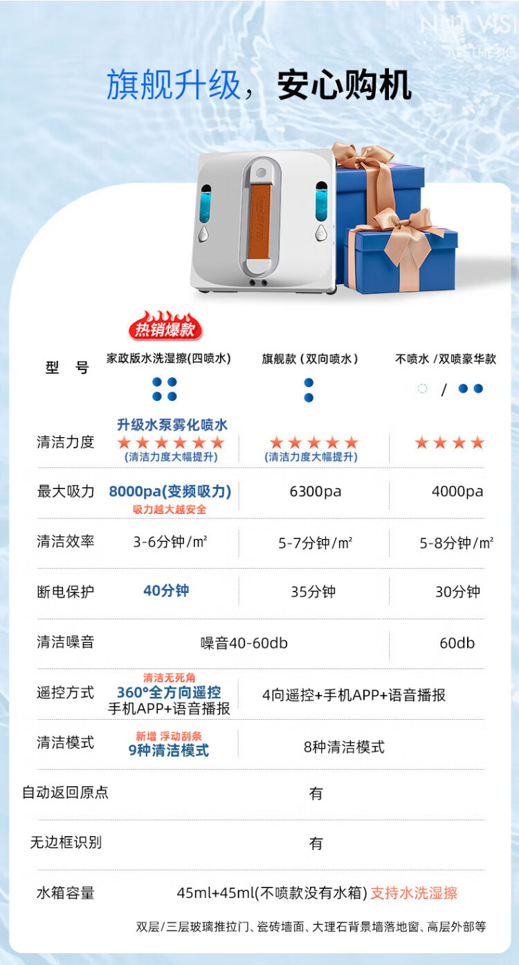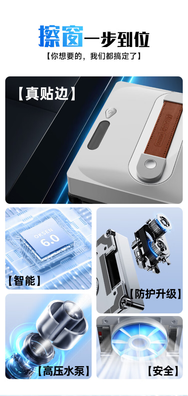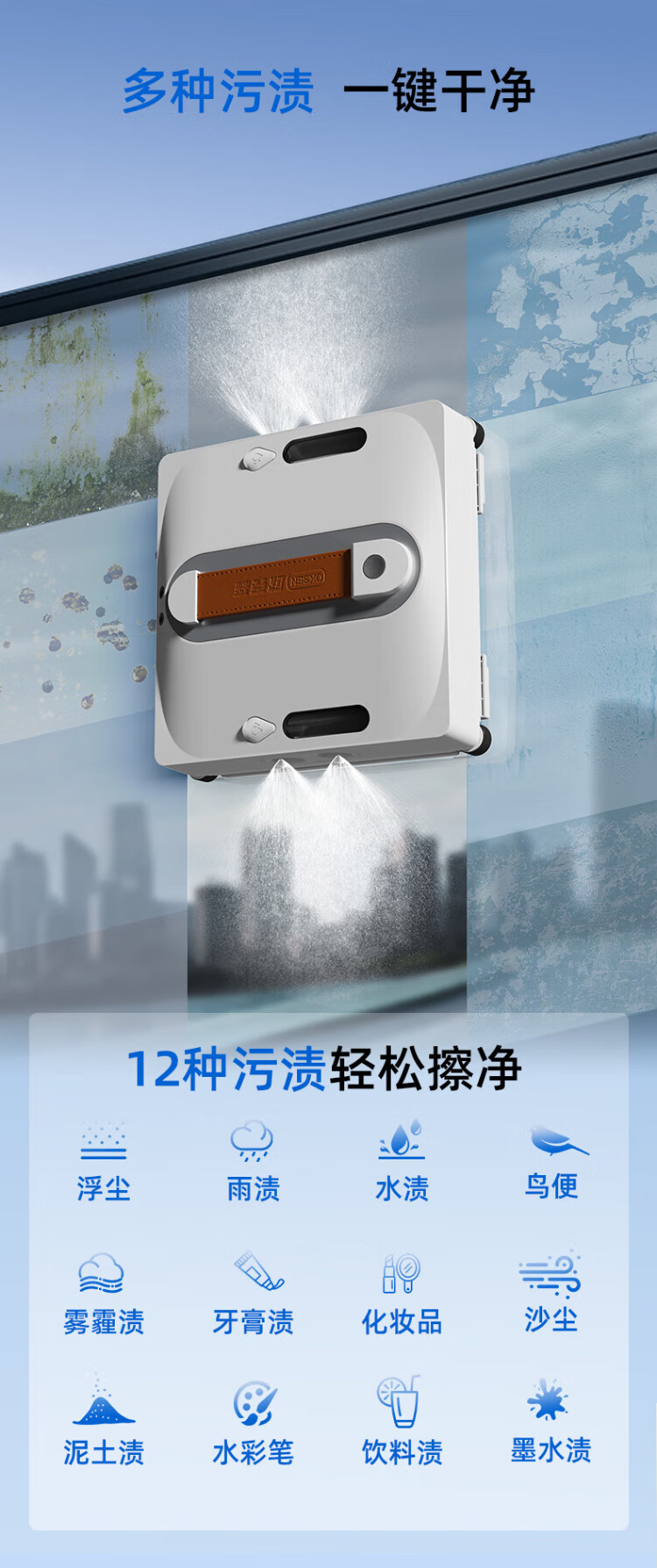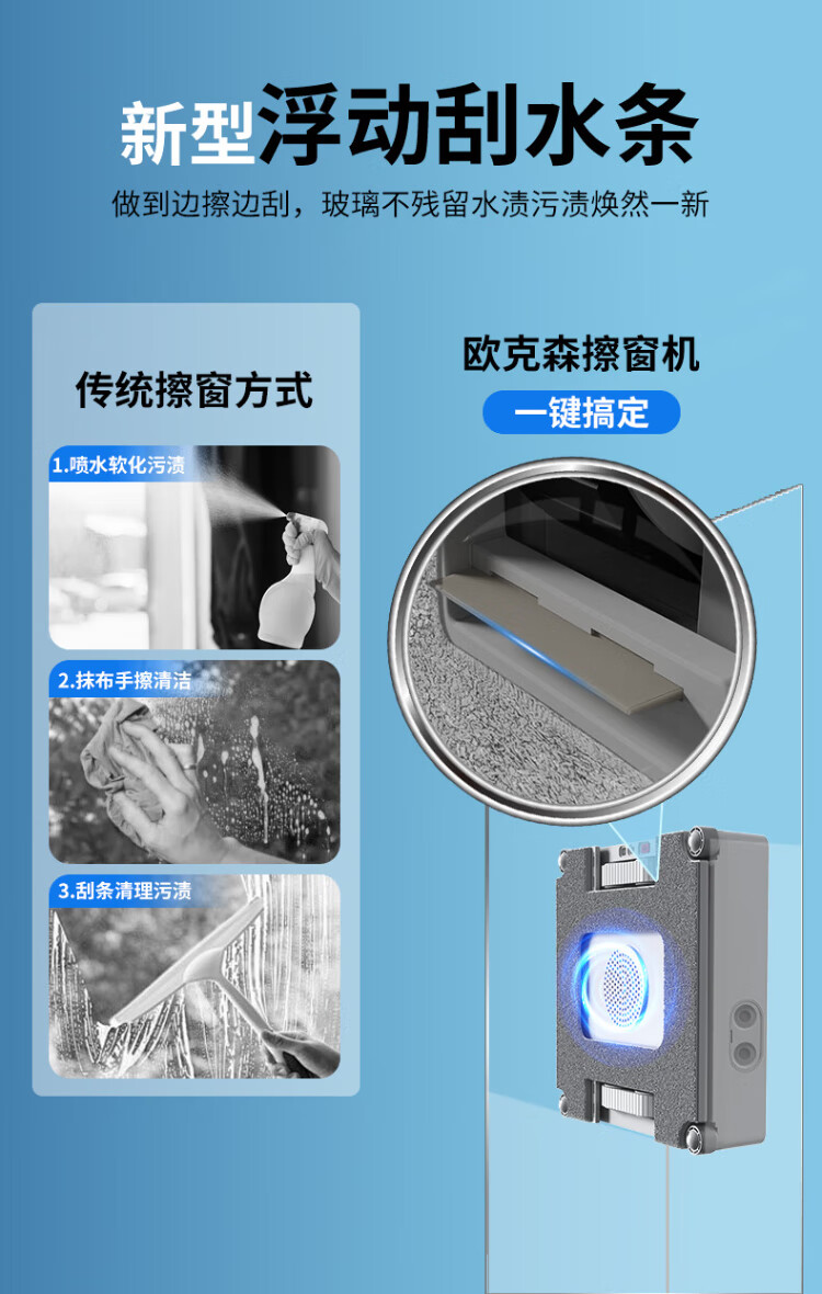 OUKESEN fully guaranteed price 12.12 fully automatic two-way water spray window cleaning robot home remote control electric high-altitude high-rise cleaning and scrubbing glass artifact W66 series housekeeping version water washing and wet wiping (four water sprays) + scraper