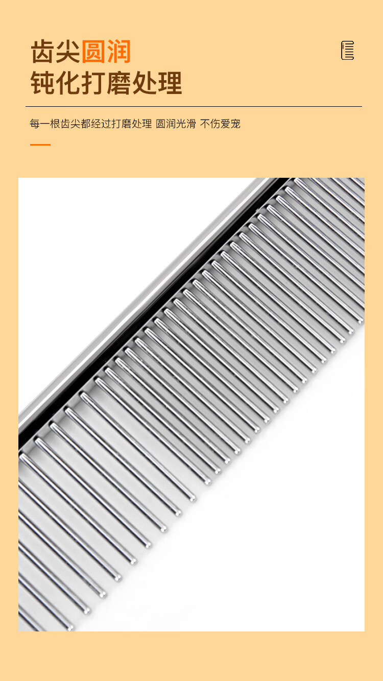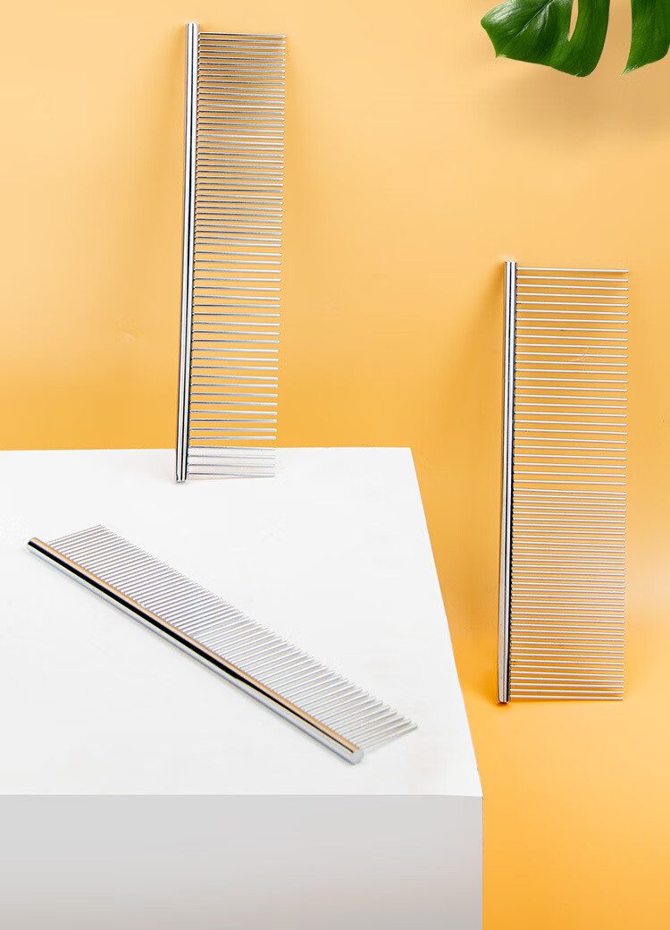 Cat and dog straight comb comb cat and dog cleaning and grooming electroplated stainless steel knot comb straight comb a small size