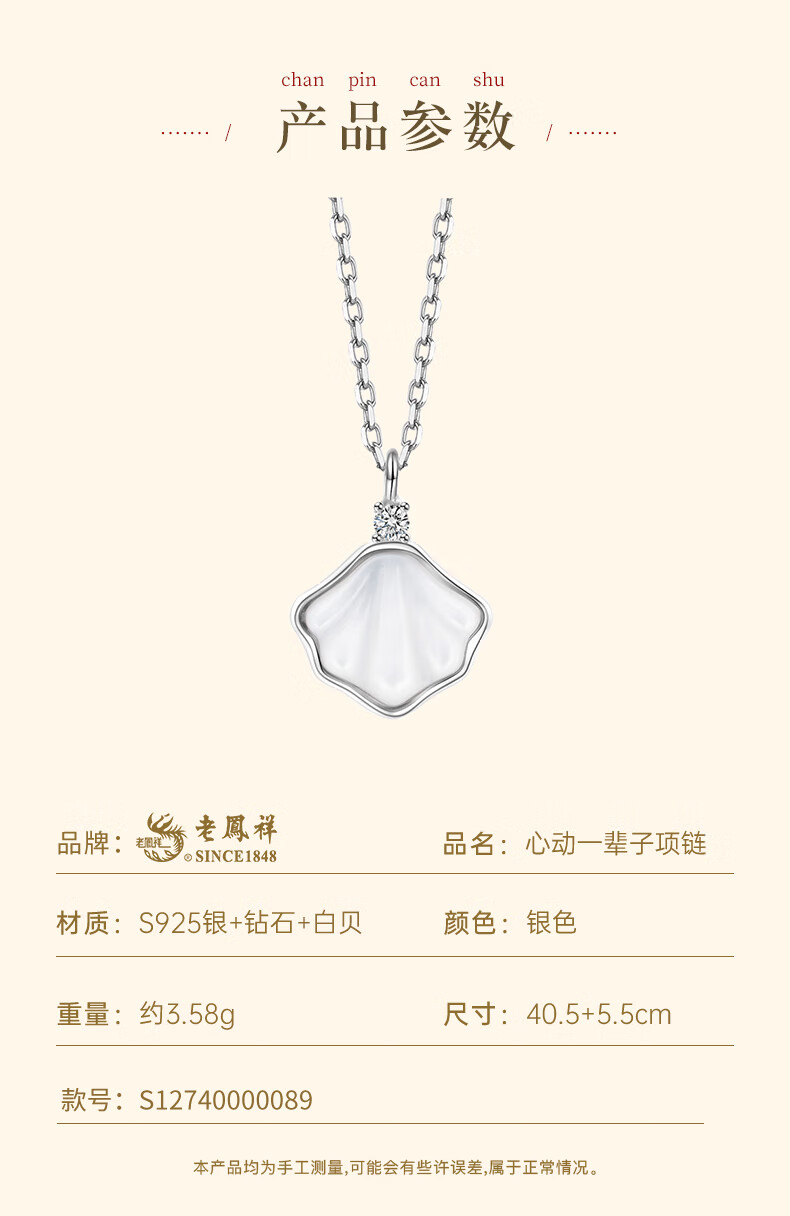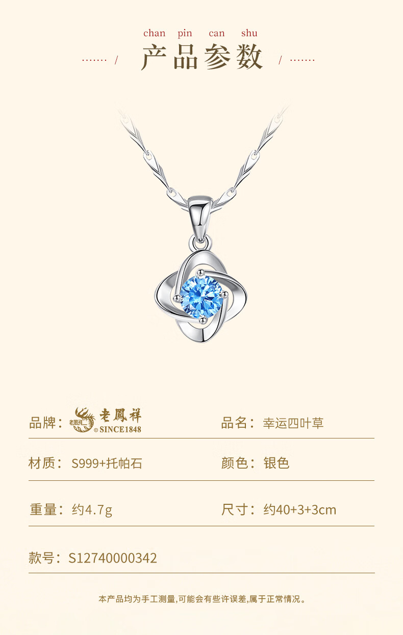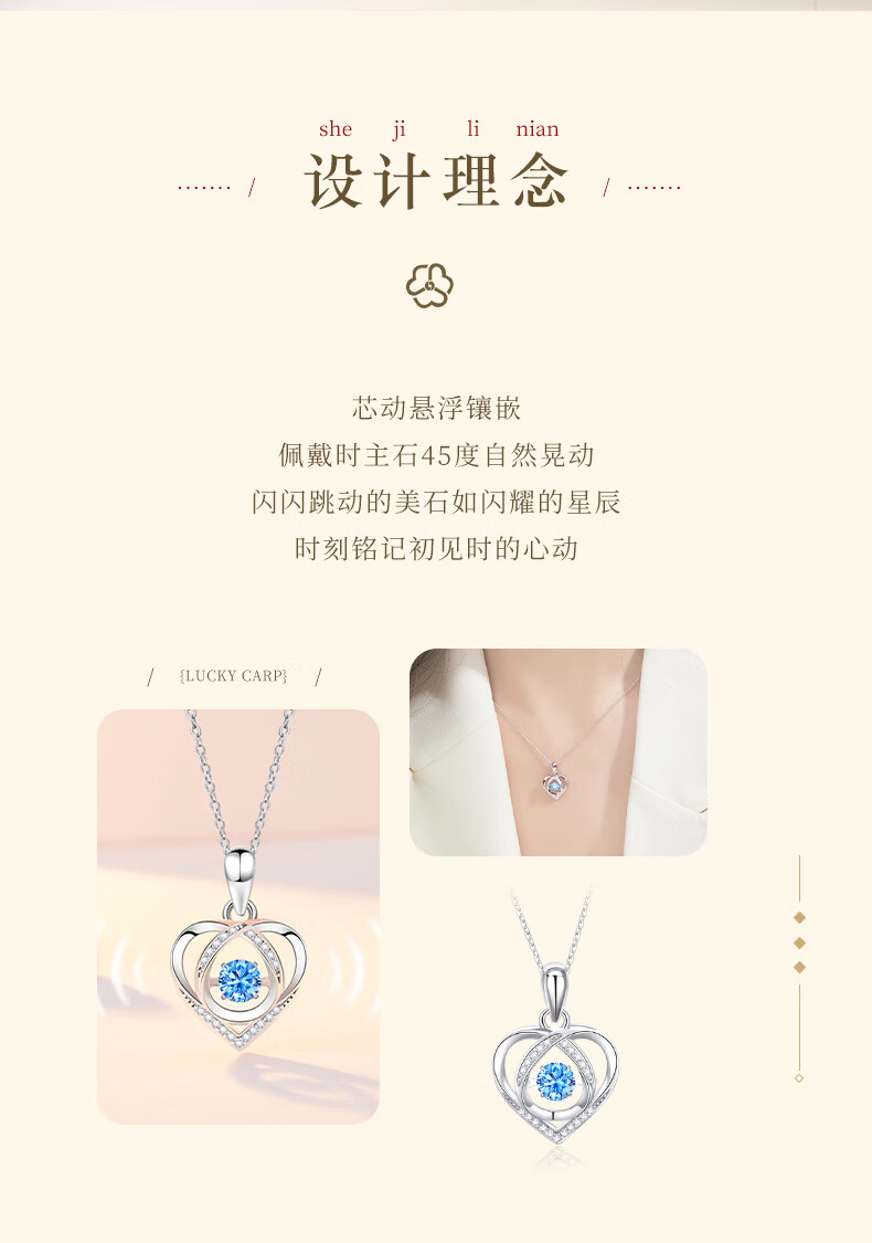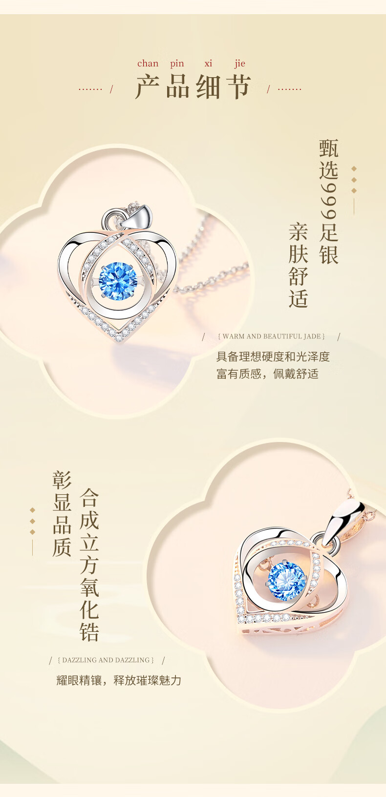 Lao Fengxiang pure silver necklace for women, light luxury beating heart pendant jewelry, high-end birthday anniversary gift for girlfriend and wife, white and blue* necklace, shipped from local warehouse nearby