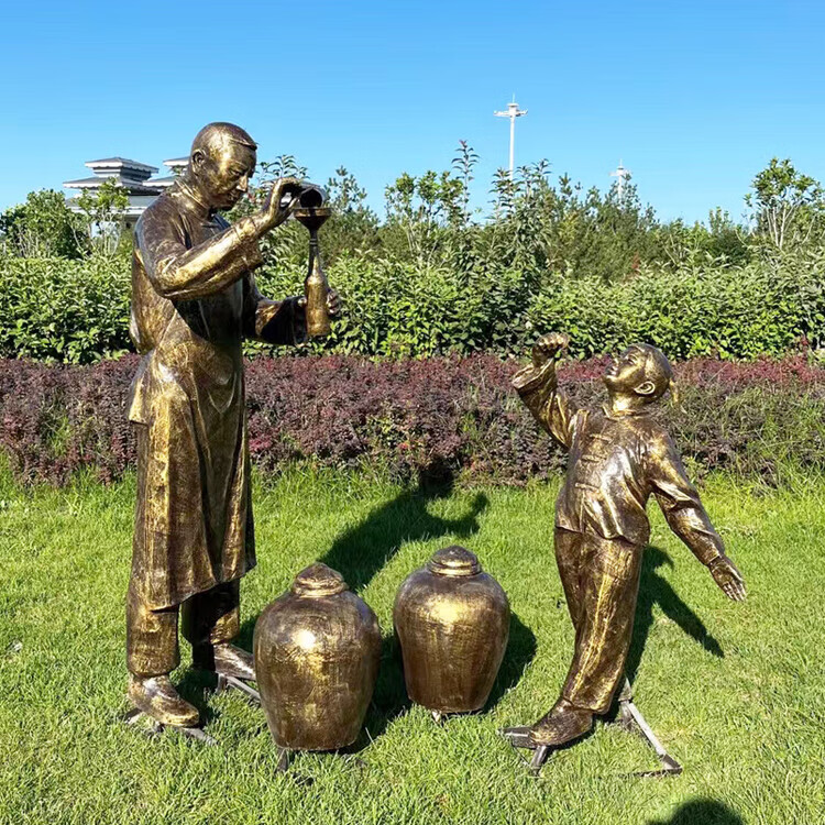 Wine Saint Dukang Imitation Bronze Sculpture, Wine Fairy Tasting Fiberglass Statue, Tavern and Winery Yidi Character Ornament Customization, Color, Dingjin