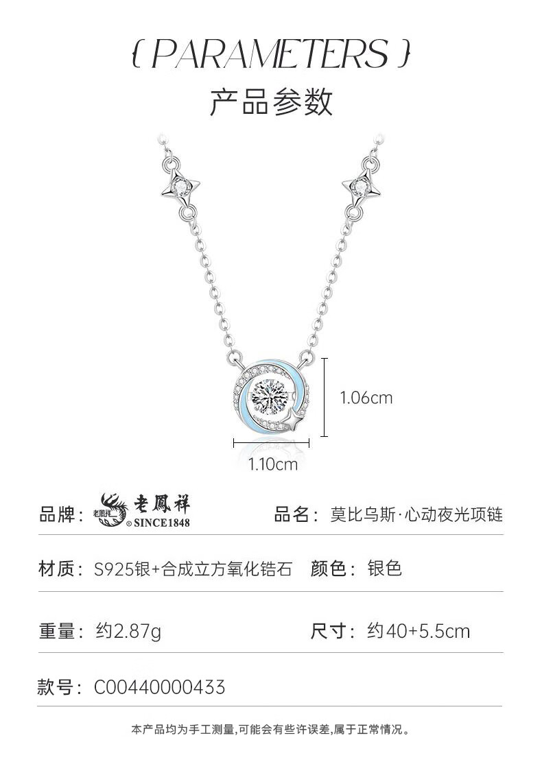 Lao Fengxiang silver necklace for women, light luxury Mobius pendant jewelry, high-end birthday anniversary gift for girlfriend and wife, pure silver * Mobius * local warehouse/delivered nearby