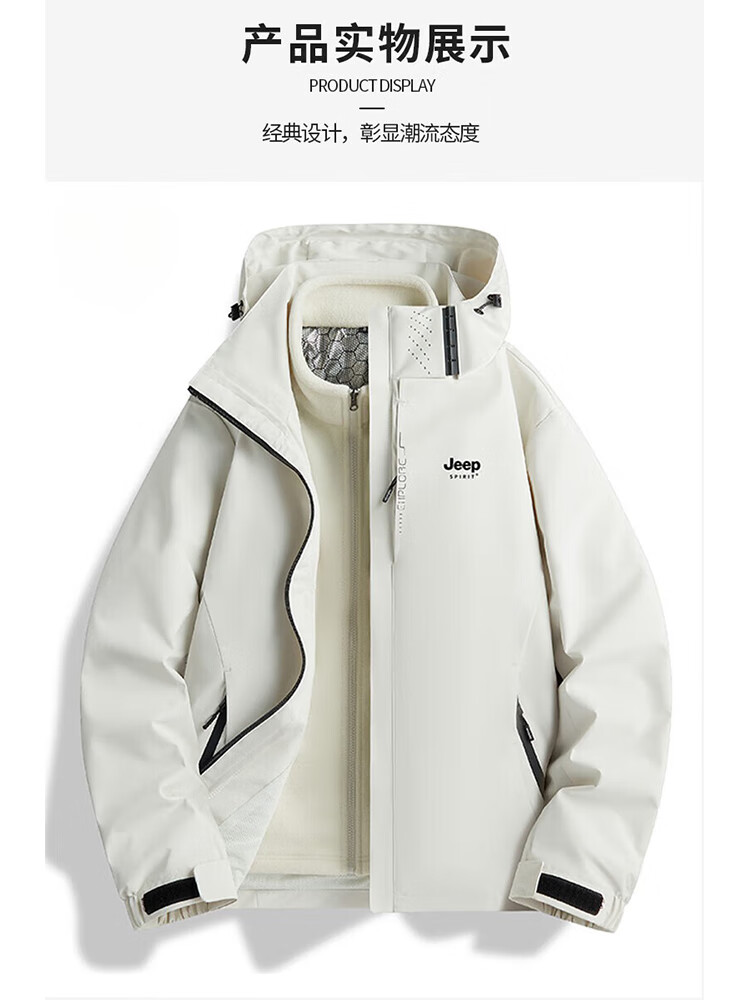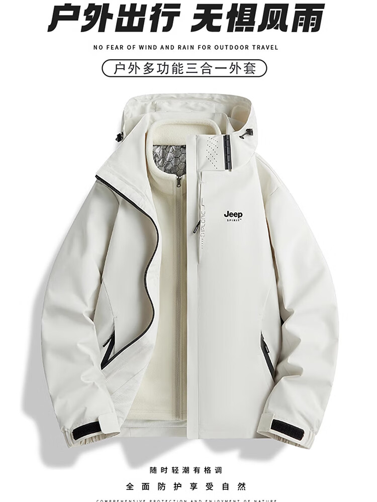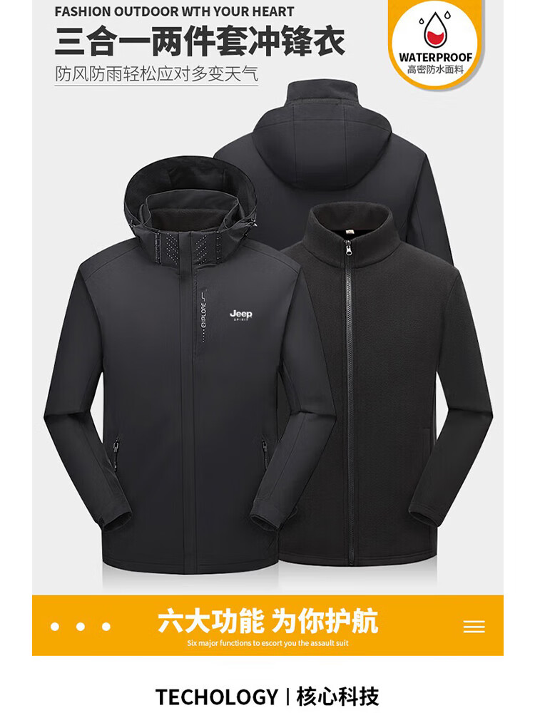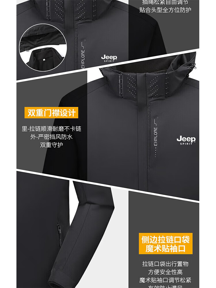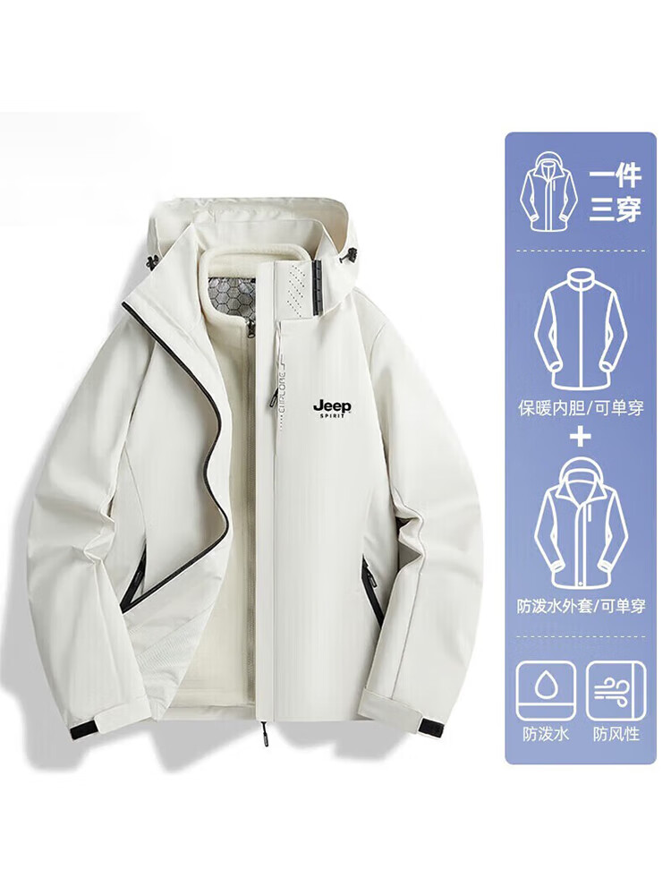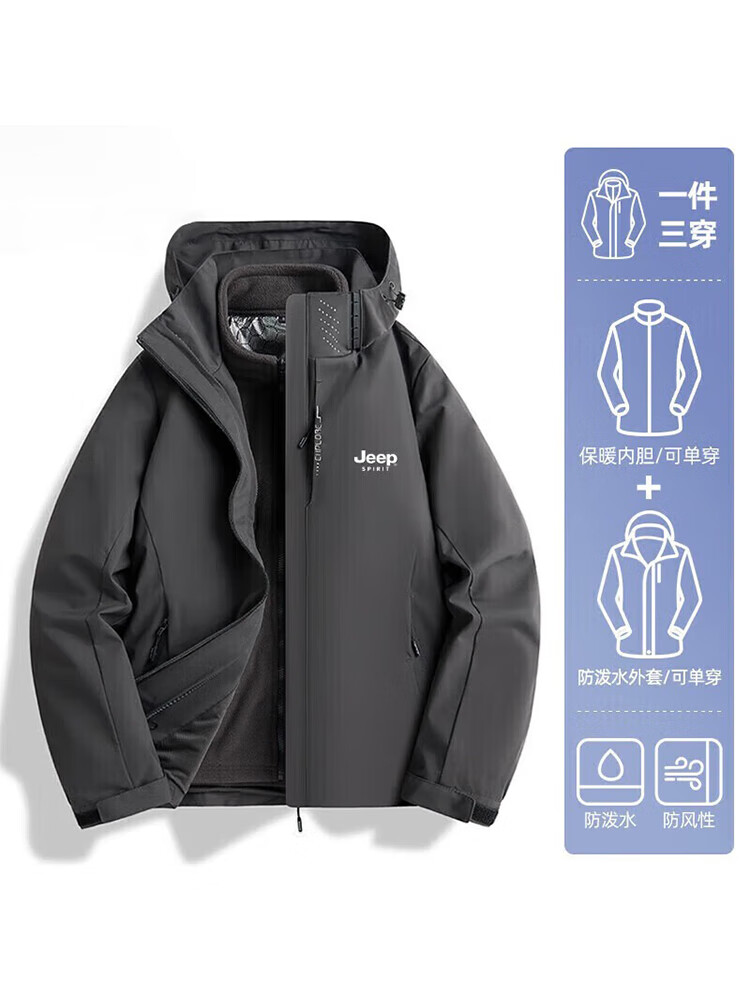 JEEP SPIRIT men's spring and autumn jacket outdoor sports two-piece set removable liner top zhongli-6268 three-in-one black 2XL (recommended 140-150Jin Jin equals 0.5 kg)